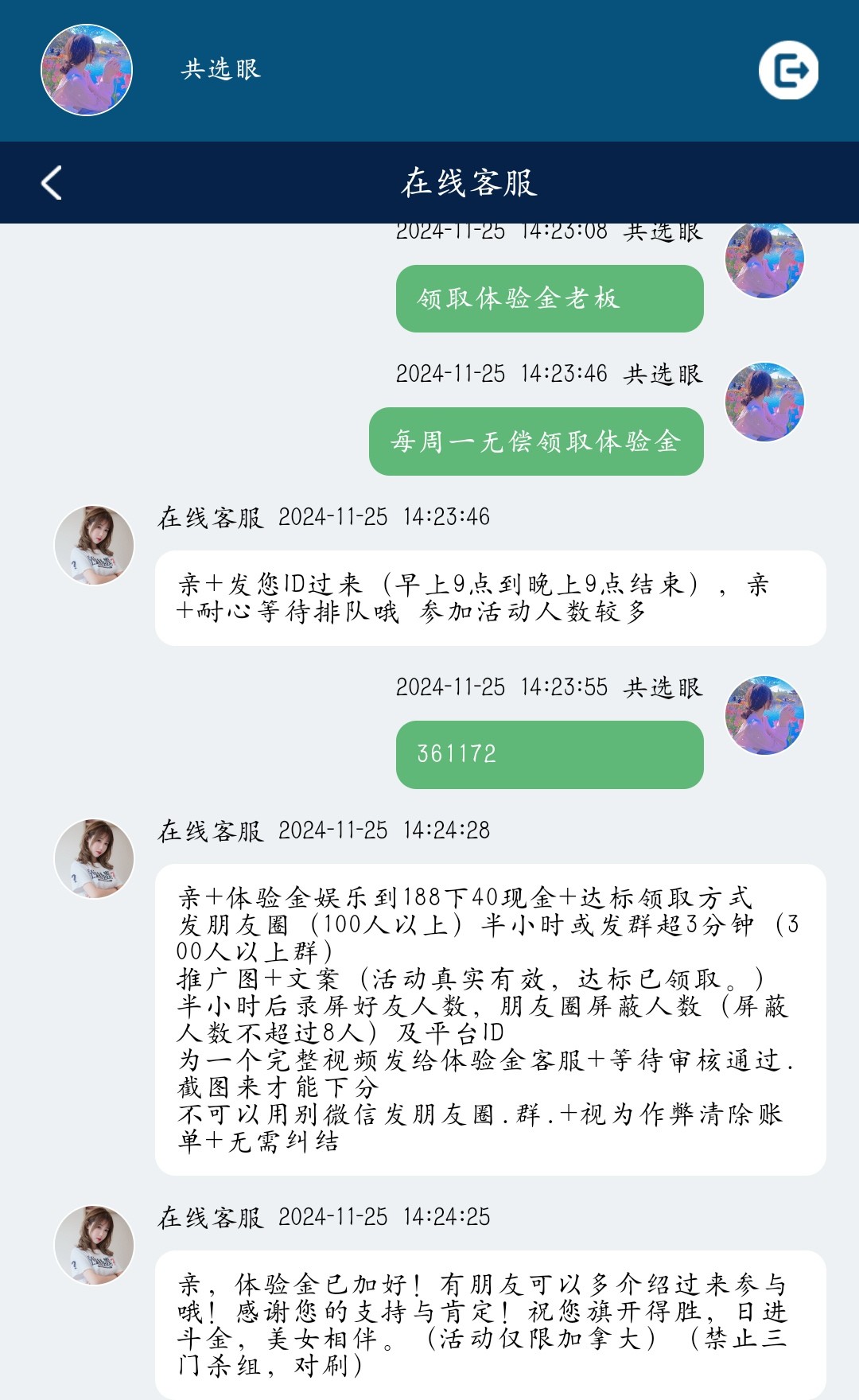 找在线客服领取周一体验金 18打到188下40现金 发群三分钟 随便找个群发三分钟 提现出款的老哥反馈下