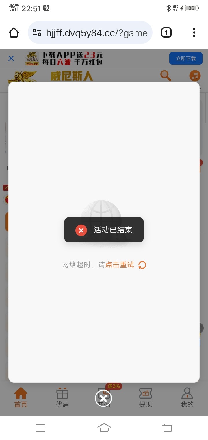 台子没格局 提示活动已结束