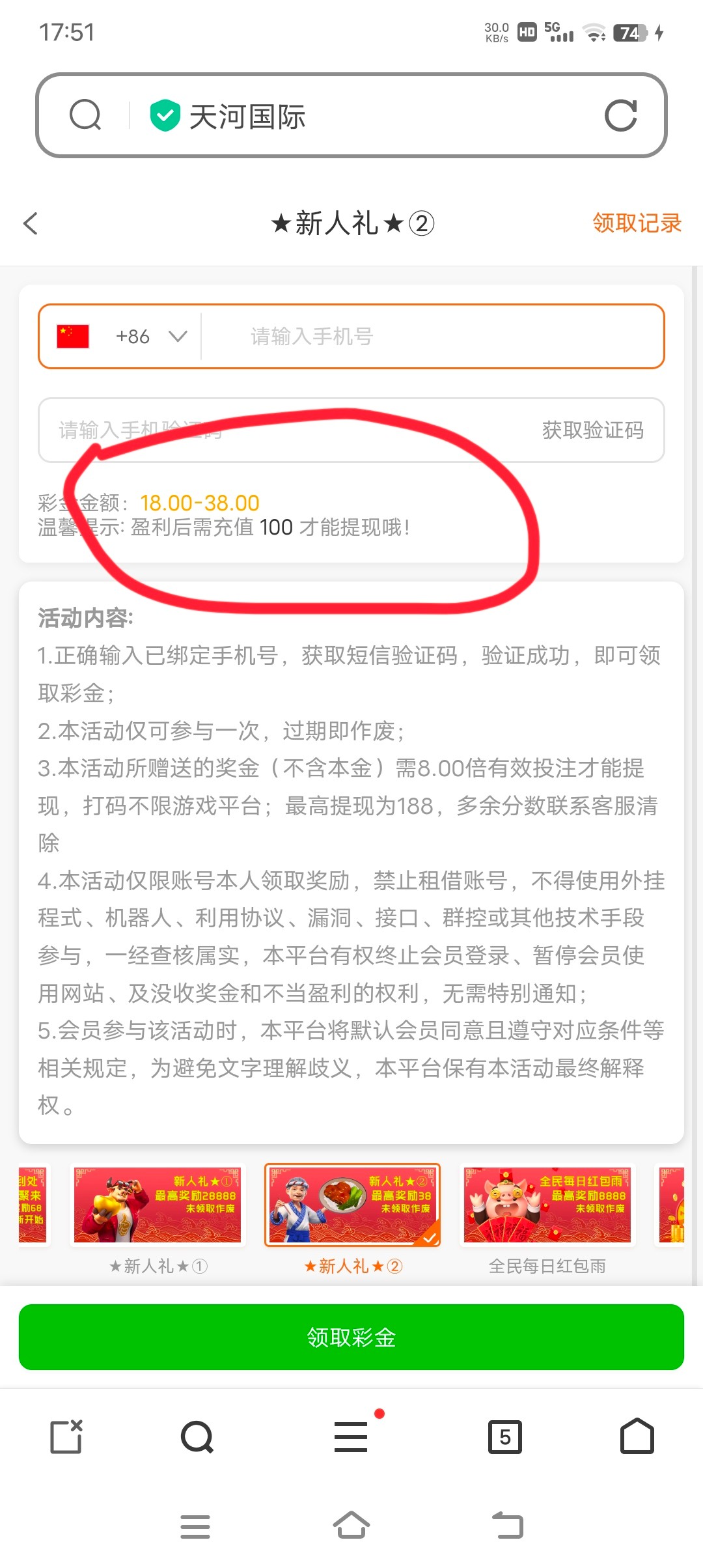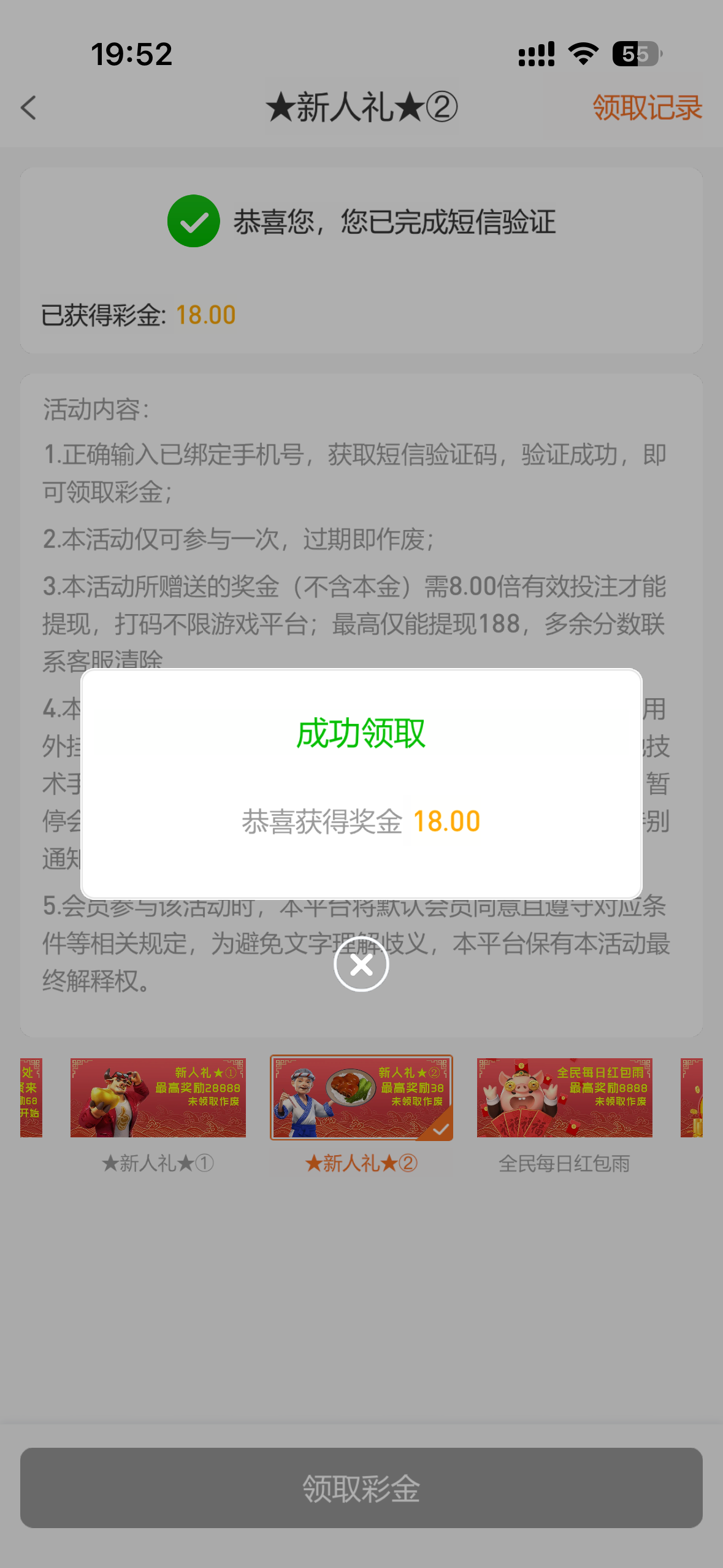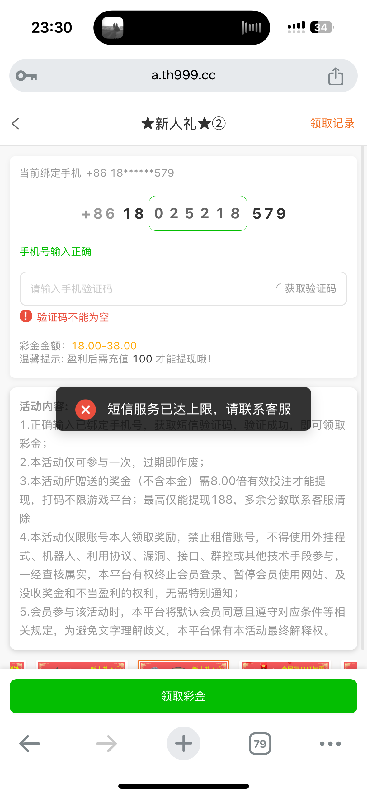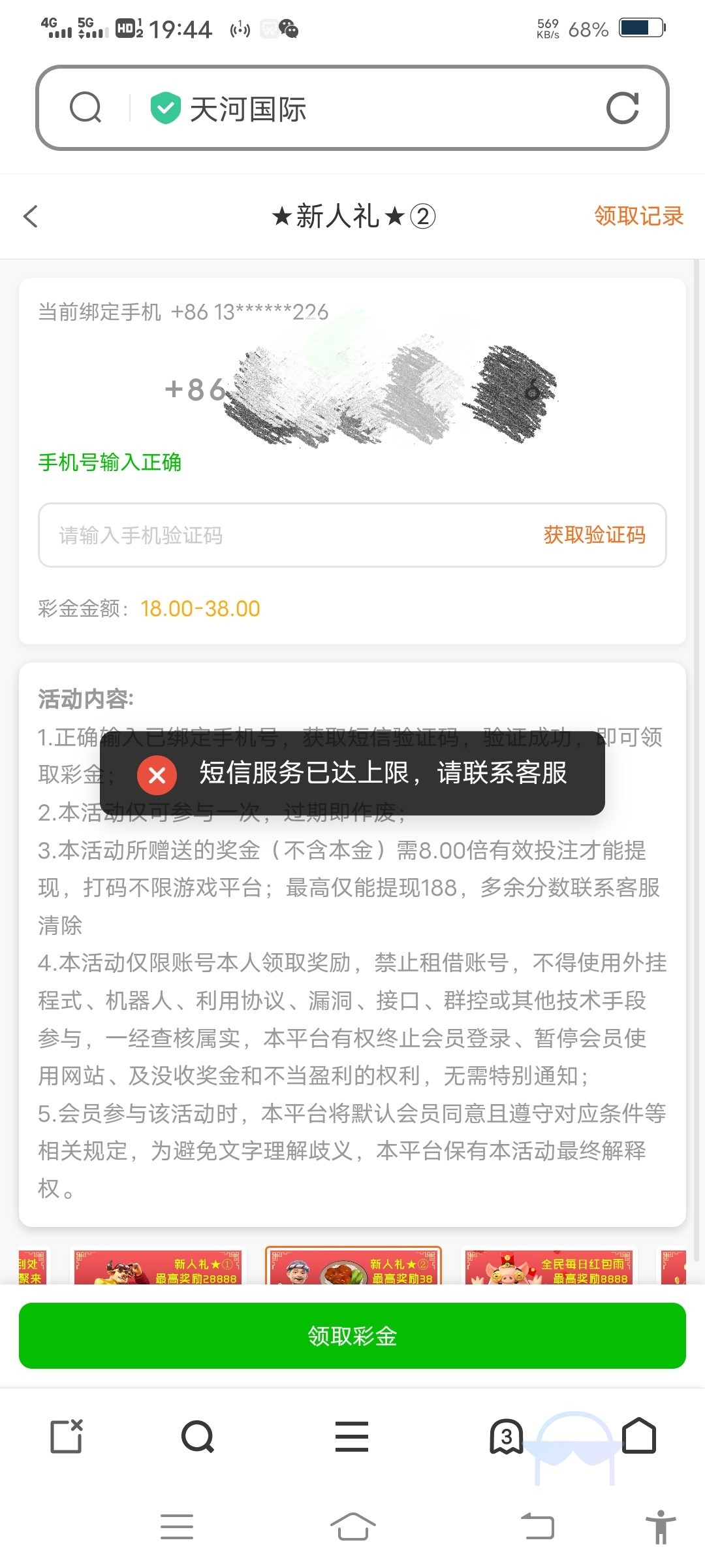 发两次短信就领不了