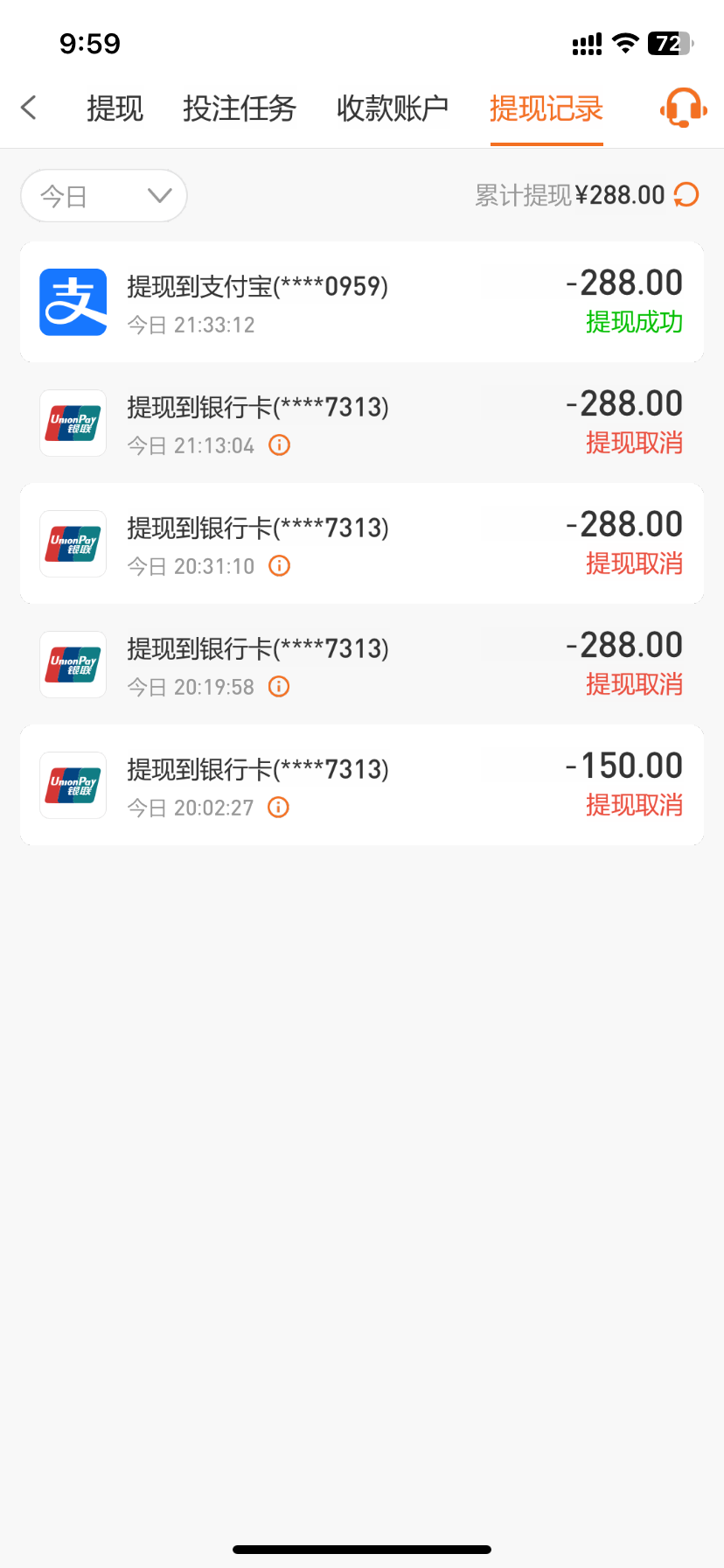 提了3个小时还没到账
