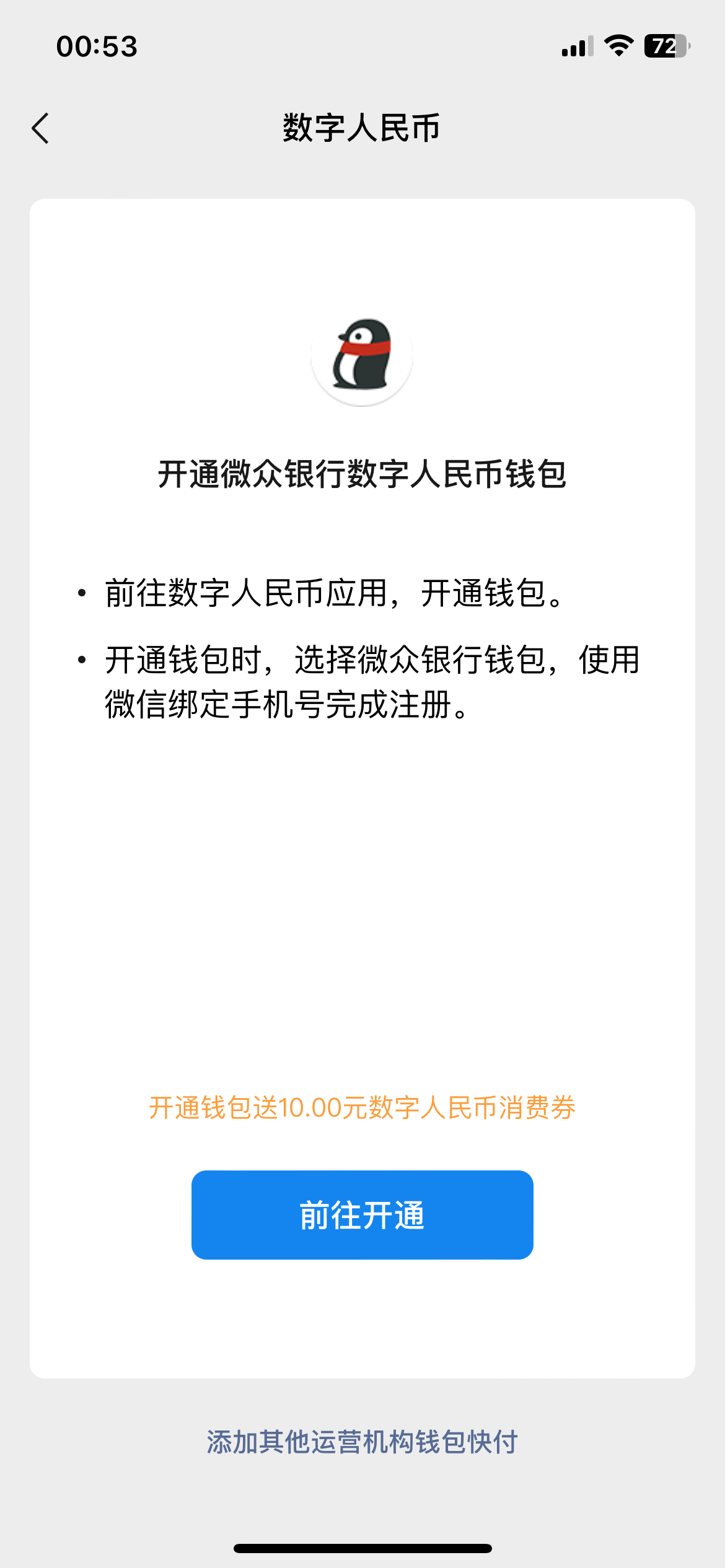 微信钱包打开数字人民币开通微众数币送10消费红包