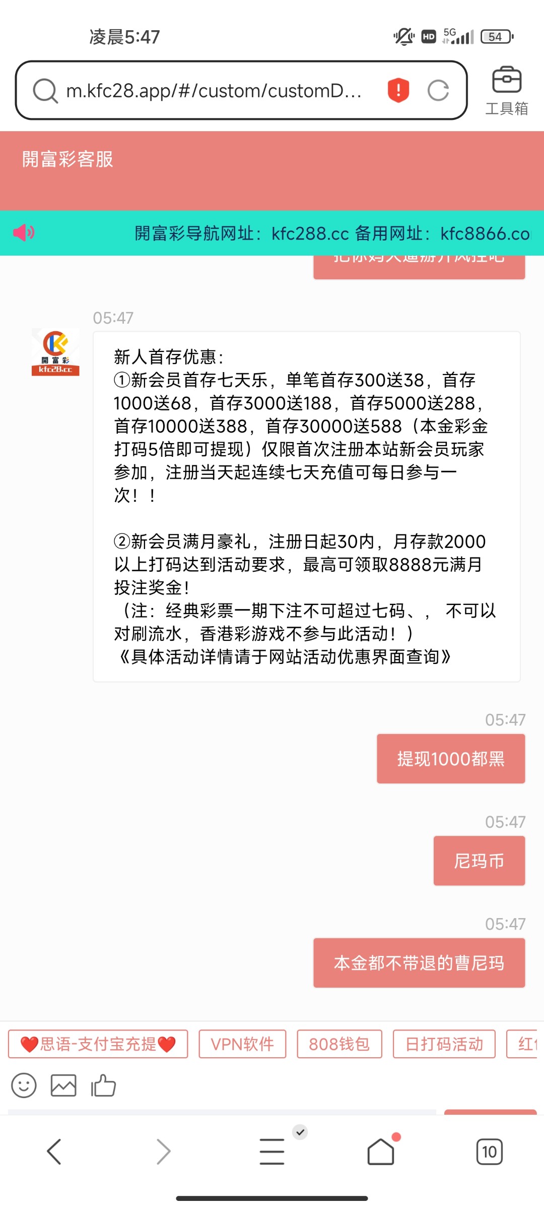 kfc28.app优惠没这个活动我直接找客服申请注册彩金就送了10水 赌神去一把死
