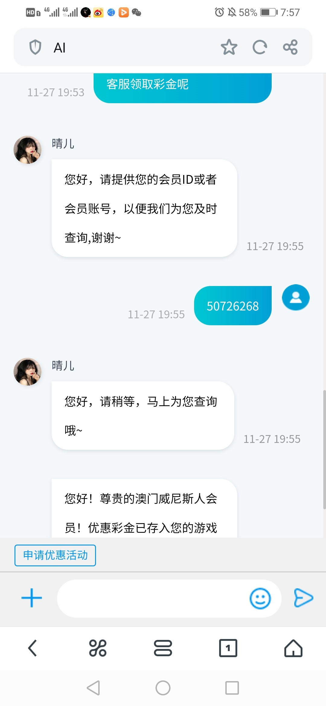 澳门威尼斯电话特邀送了18。我没有打出来。网址是 92299.cc