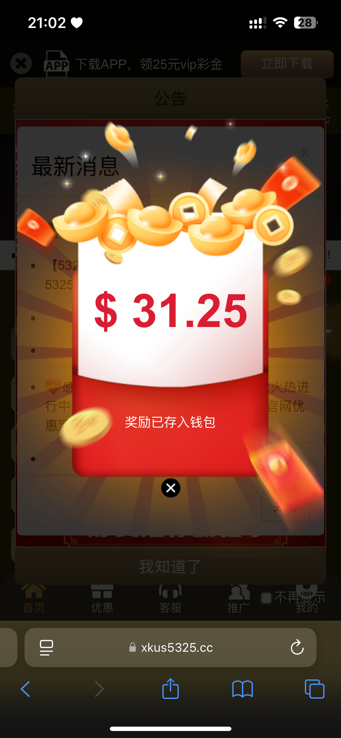 这个之前有老哥发帖说过,5325历史回馈已经可以领了,说28号才能领取但是27号晚上八点就能领取了,还有一次转盘机会没给明天上号看看,链接5325.com