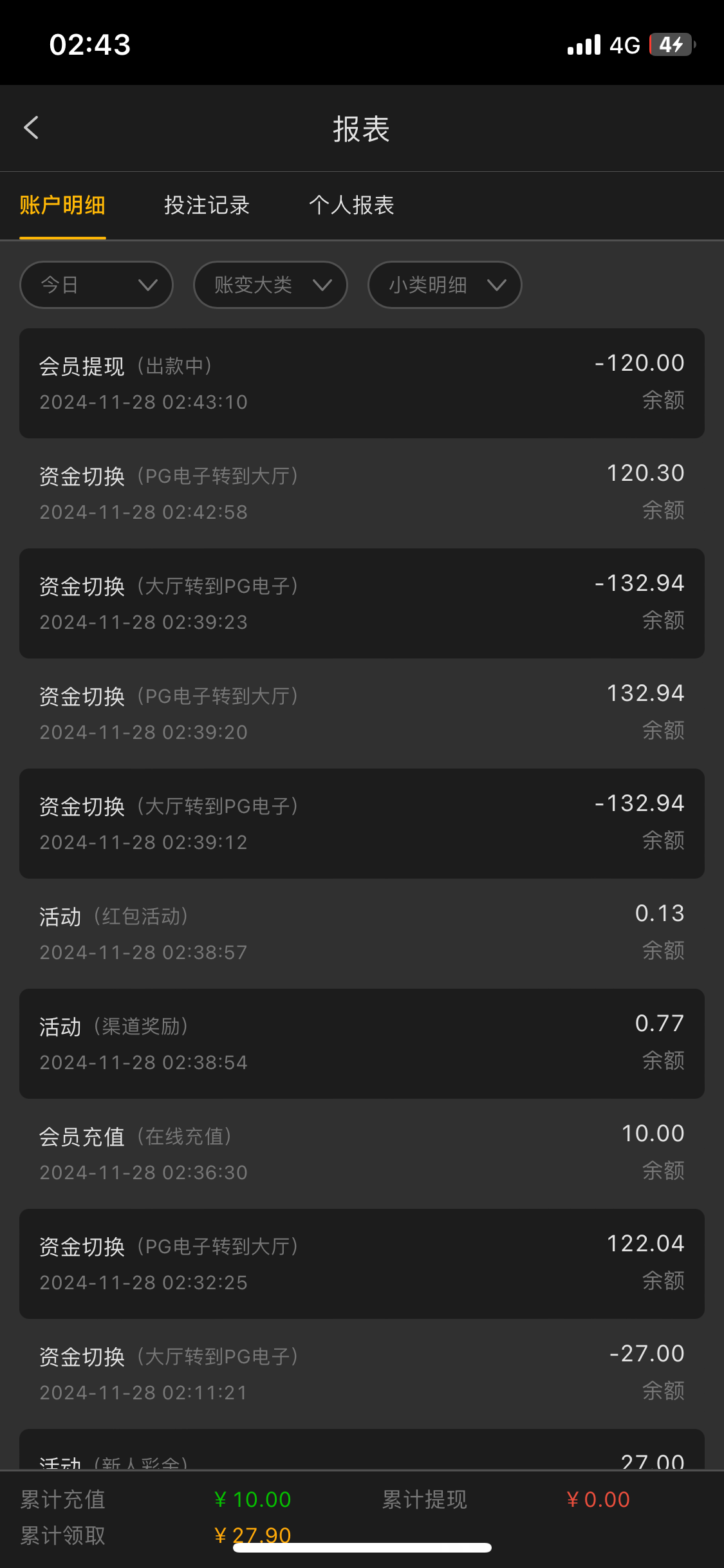 打到137 充值了十块钱 流水打够提现到账了 给你们测试了