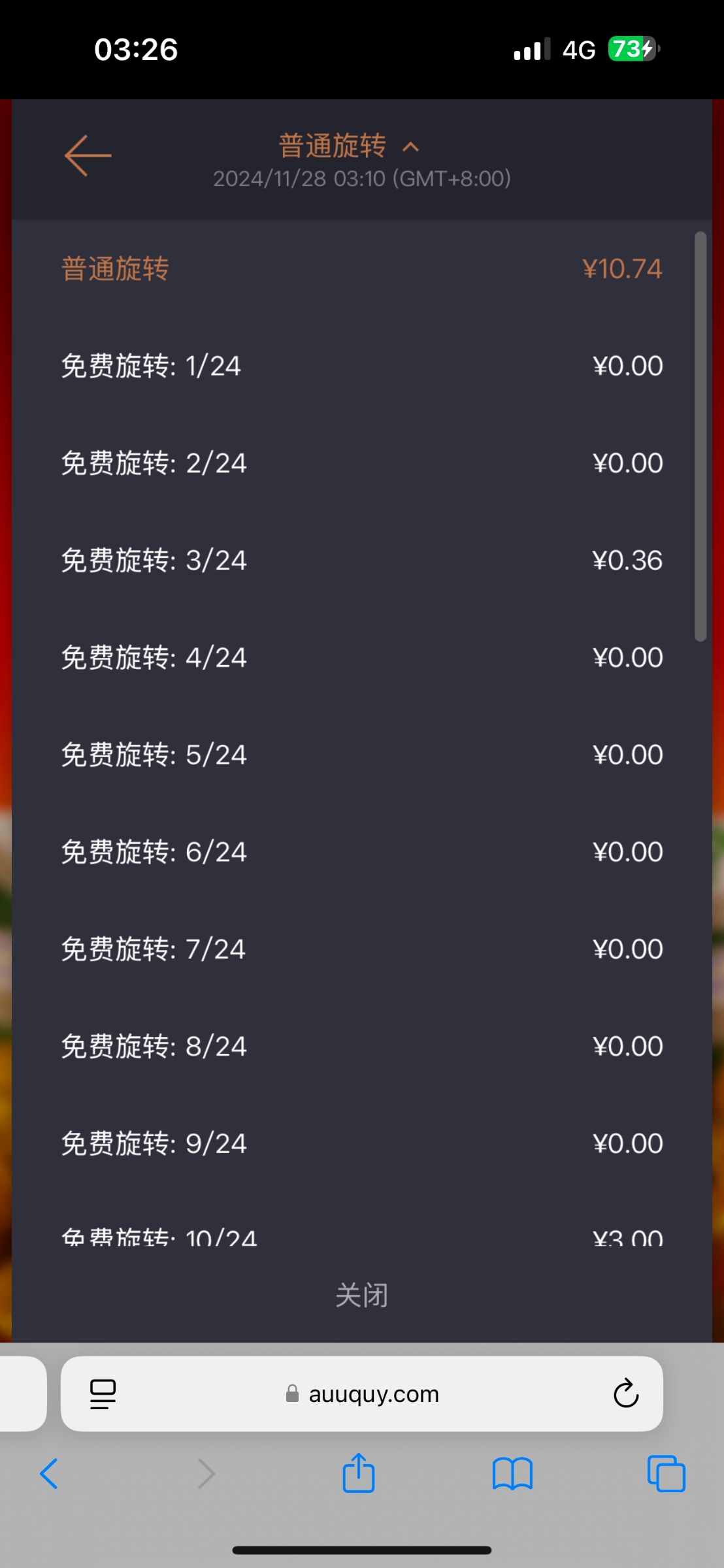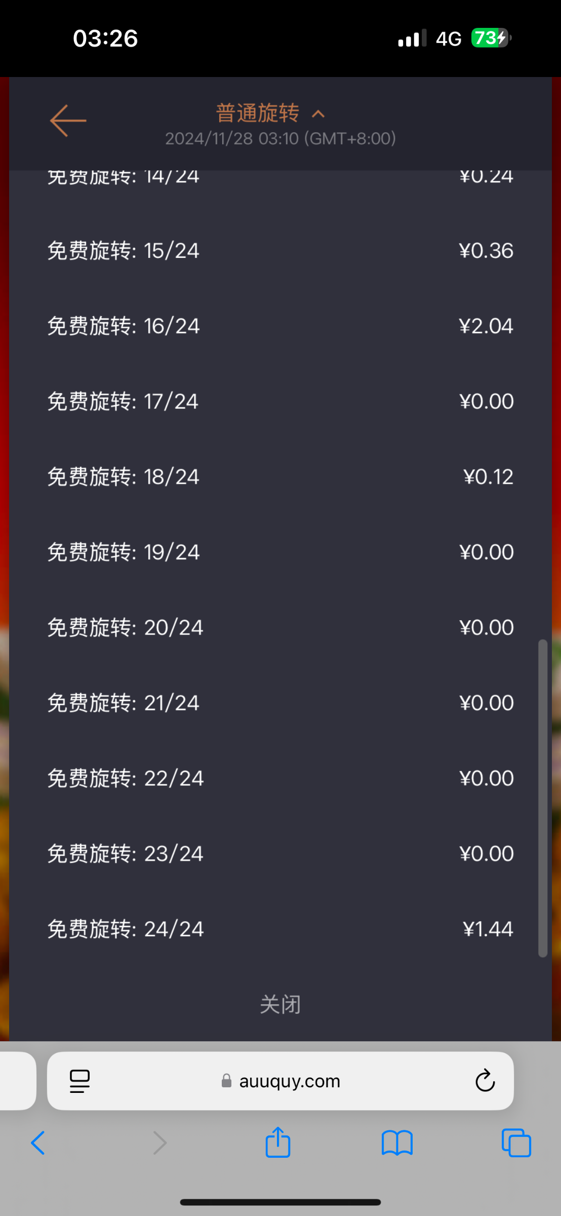 不得不拿出我这一張了,20圈,17圈空转,才给了100 1.2进去的时候框框榨五百多,真的要气死了,以为要站起来了结果毛都不给。不过也不能怪他,毕竟倍数那么高,哪有那么容易炸,看运气来吧