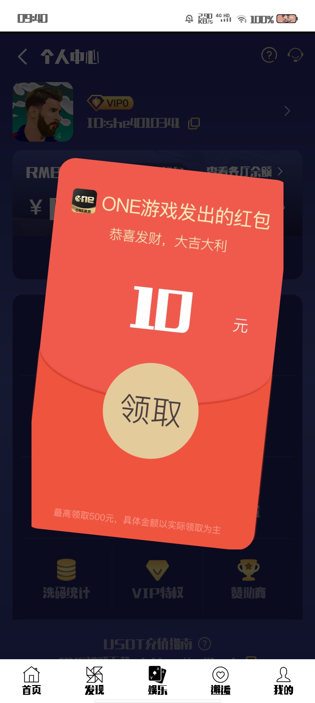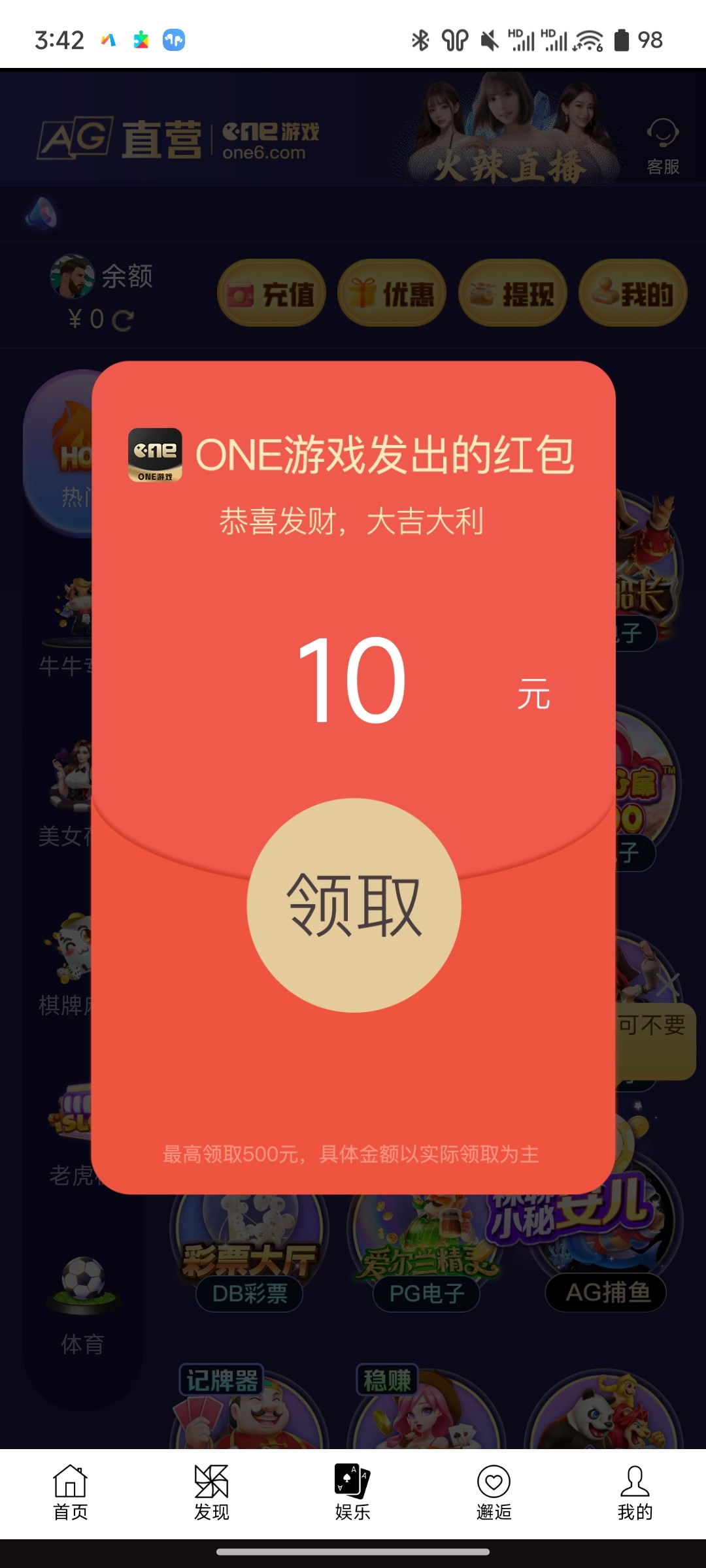 下载点中间的娱乐,退出来再点进去送10 没打出来