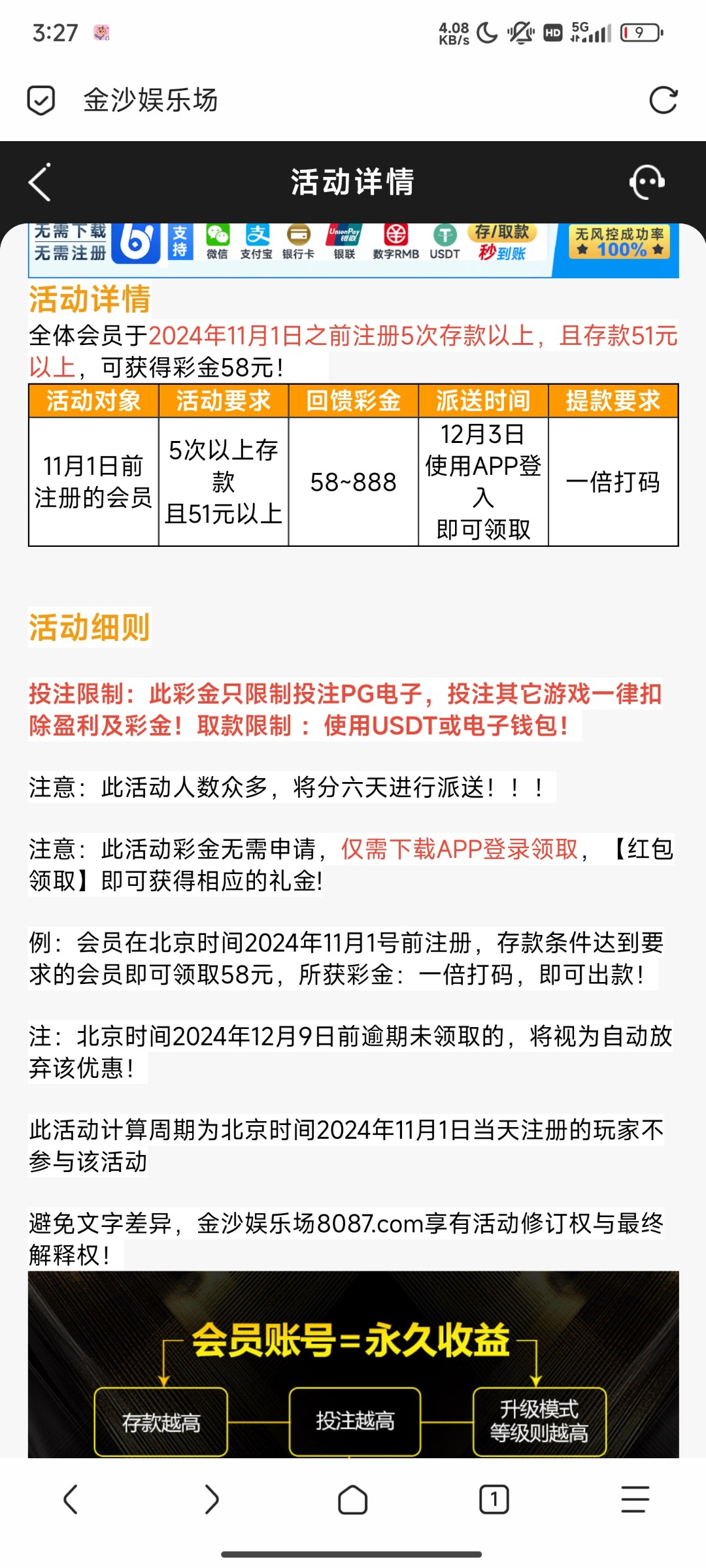 3号和6号有号的老哥们到时看一下历史回馈没充值过的18充值过的58只能pg,这台子pg杀得很假pg来着,老哥们不要抱太大希望,6号还有个存款回馈限制啥游戏自己去看了