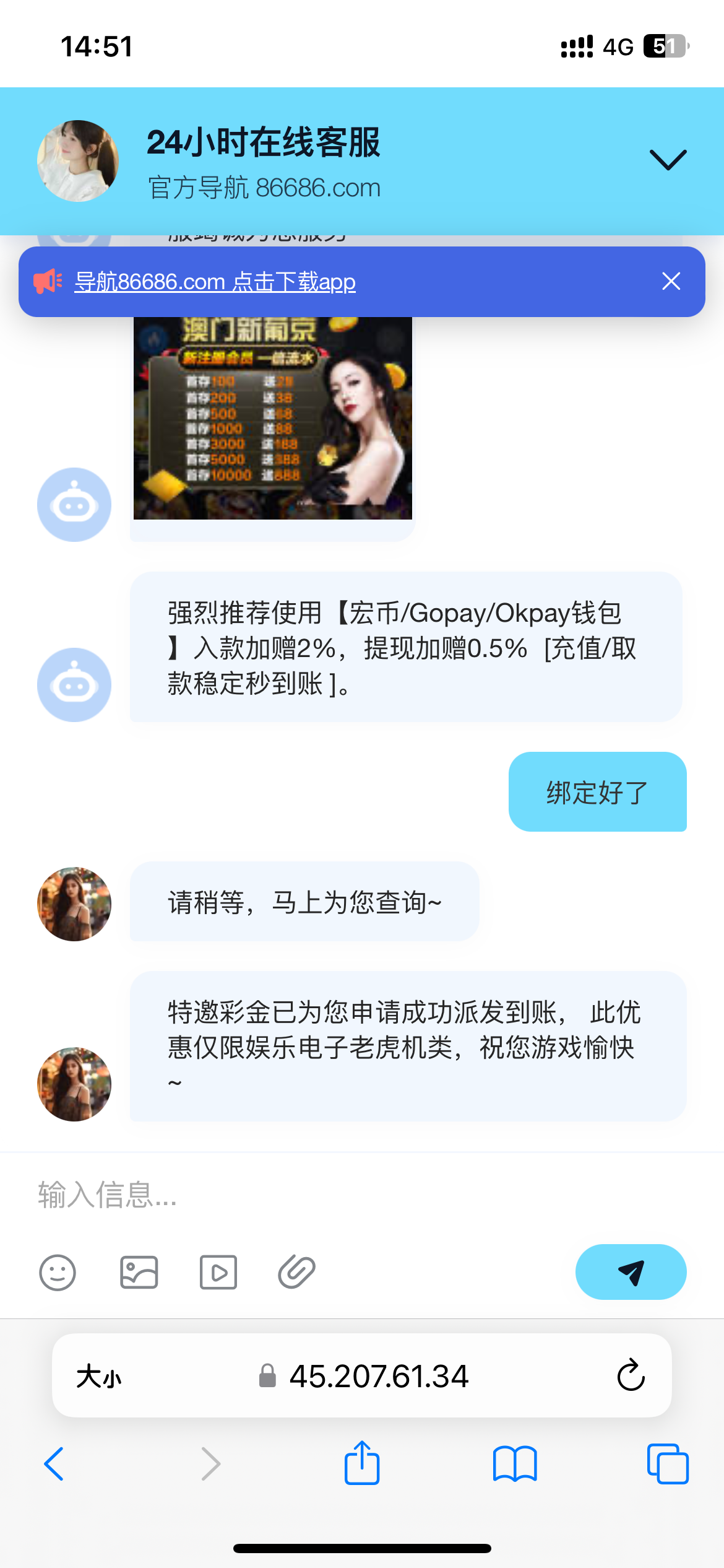 注册绑卡联系客服申请 我另一个手机号没接到电话也领到了 电话给的网址63379.vip