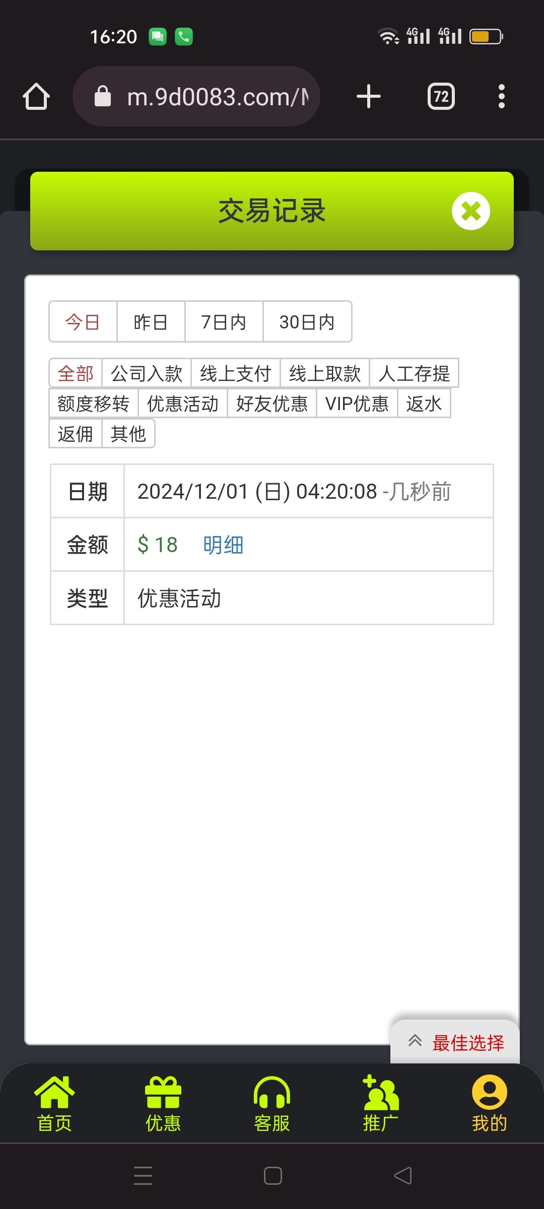 送了18加签到彩金,直接20买免费黄金城爆了500倍提现188到账了。