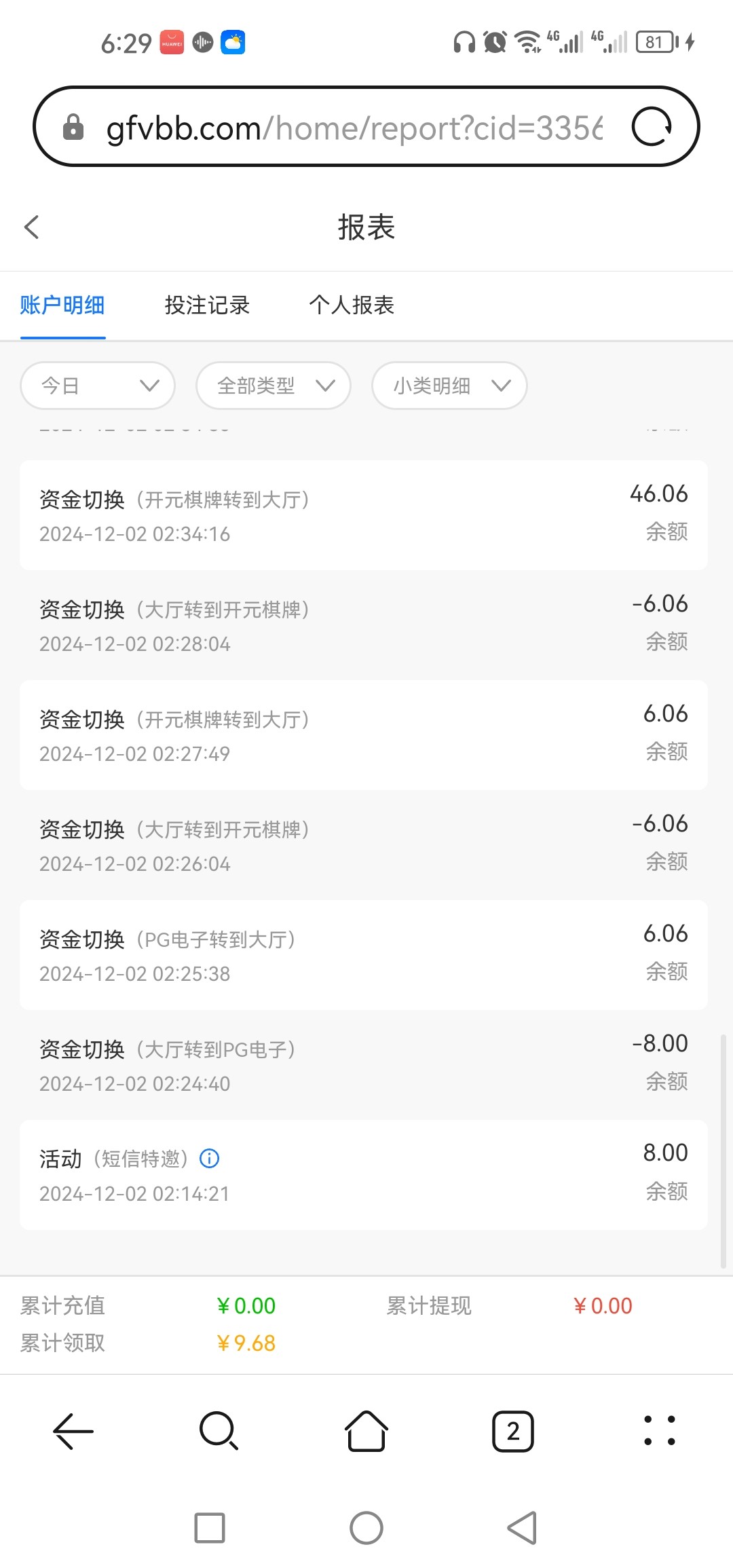 最近领了好多彩金,连他妈100块钱都没拿上去