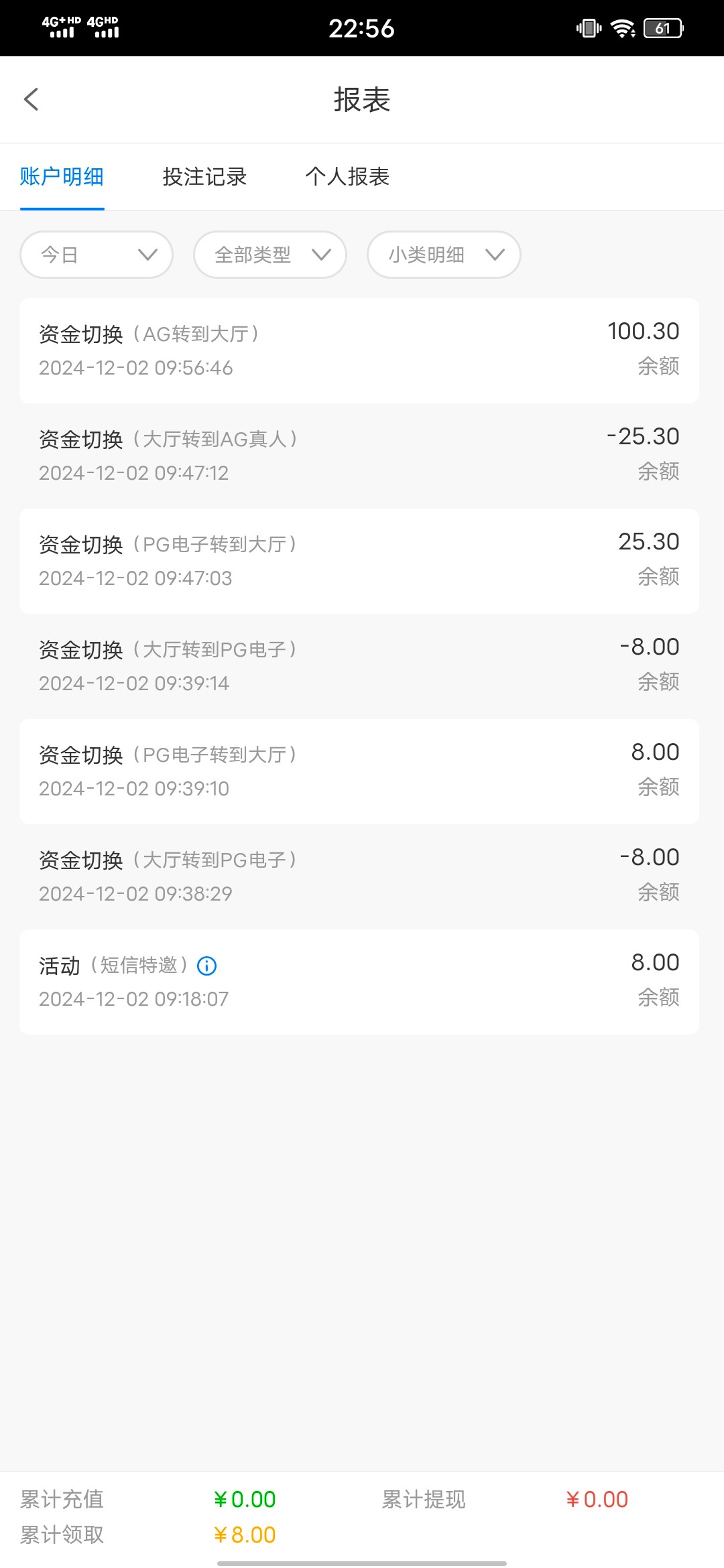送了8元,要下app加客服飞鸽号,今天充值明天才送28元彩金一下子就打完了,