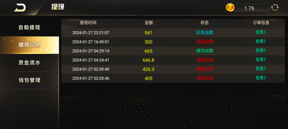 各位兄弟别在878充值娱乐了,平台三次提款就出来一次,后面各种理由退回罚流水一直说审核十几个小时了 是老哥论坛兄弟们就一起骂这个黑平台客服,论坛好多兄弟被黑了 黑平台链接
