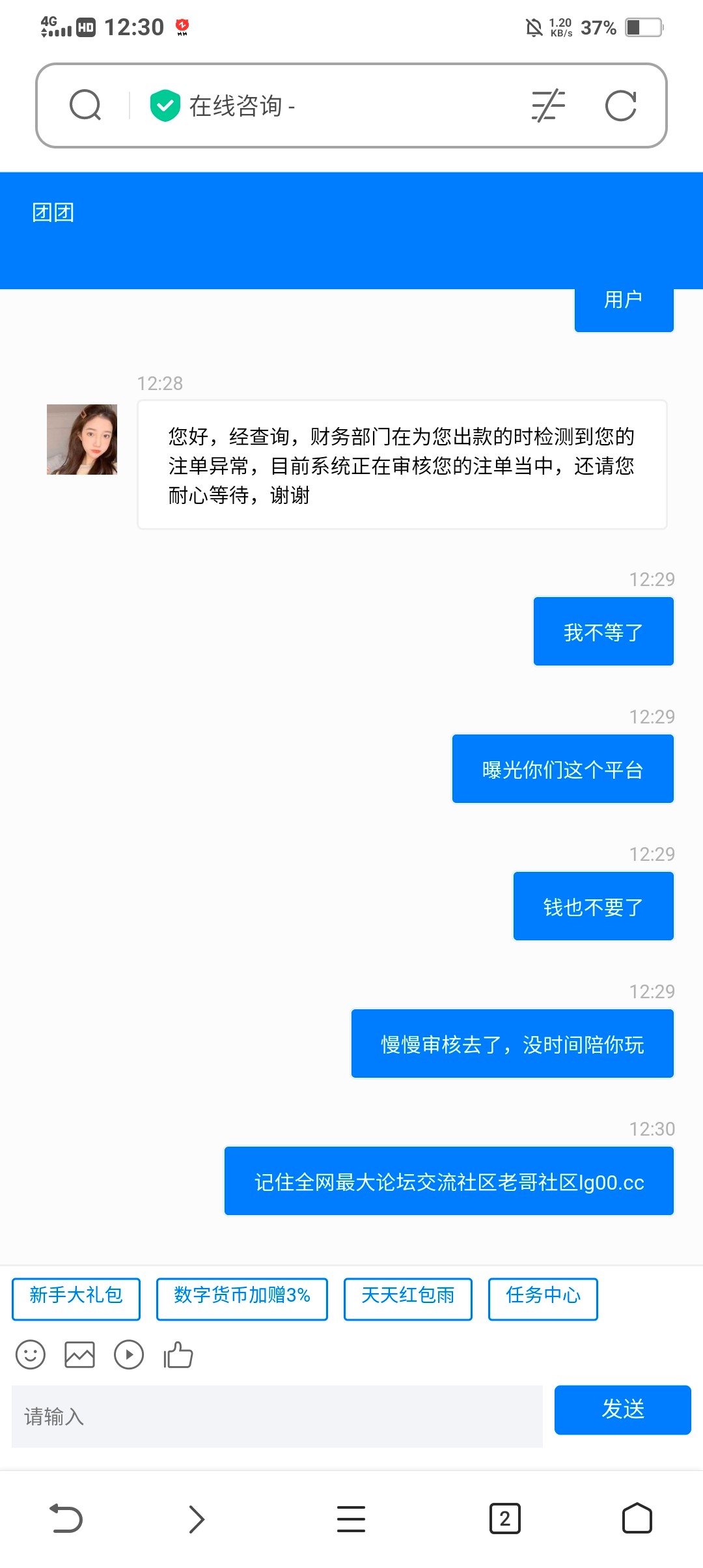看了,我有帐号,以后别玩这种平台就行了呗