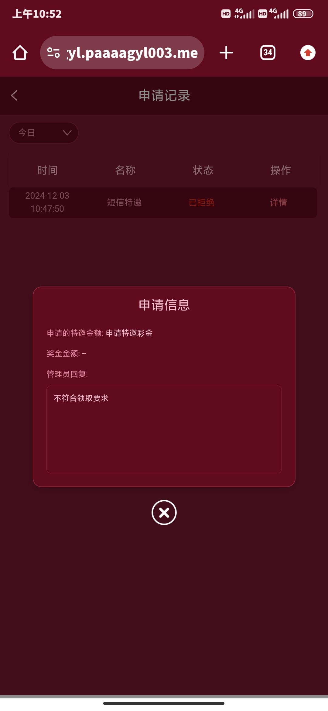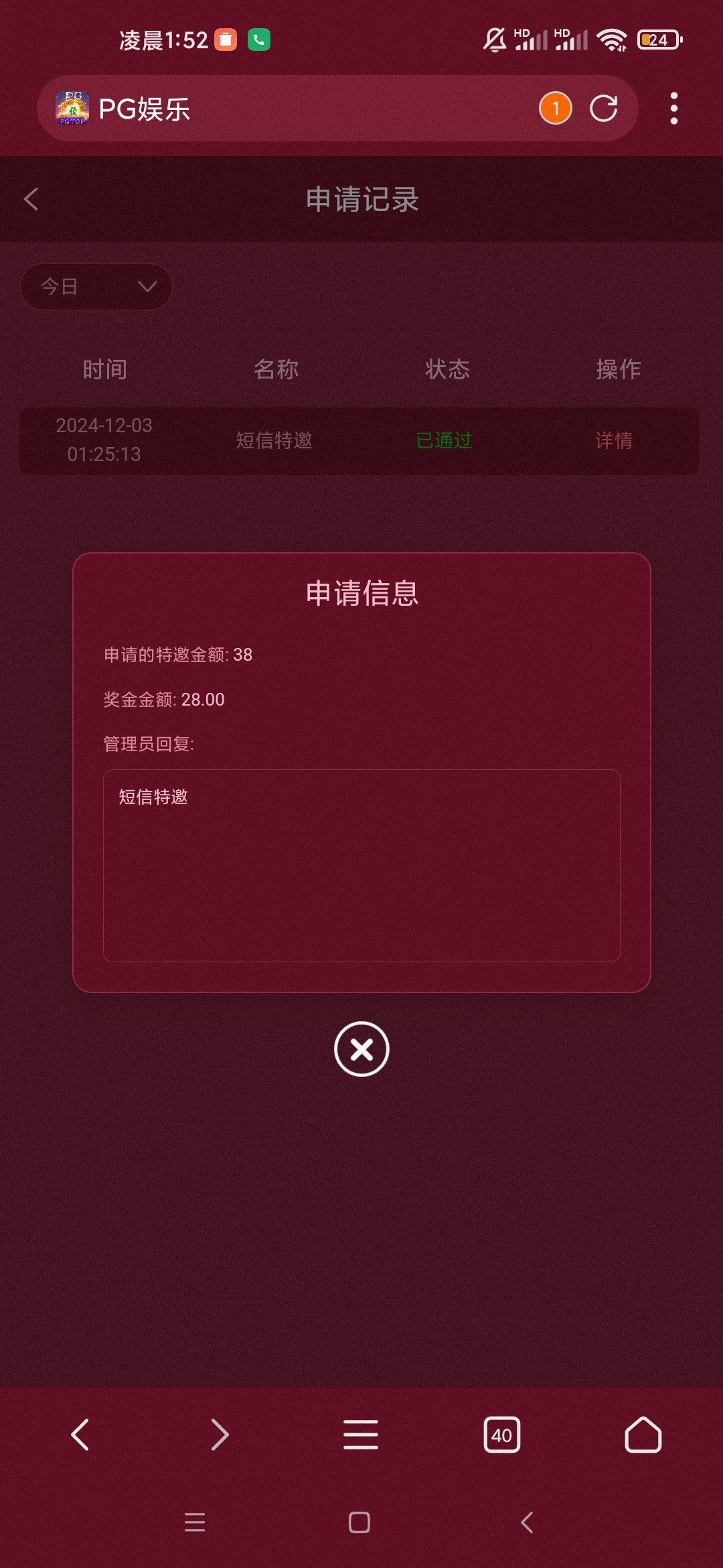 前段时间老哥们都有搞过的短信特邀! 刚才偶然翻找书签看到了网址去登录了下,看到了短信特邀那个页面点了进去又有了!我一看又可以点击申请了就知道大差不差了,随便点击了申请金额38等了不到20分钟直接到账28。前两个月申请过给了然后说提现要充值50就充了提现到账了,后来记得页面又能点了又申请到了,刚才偶然发现又能点了又申请到了! 不知道是不收一个月一次。反正白嫖即可!