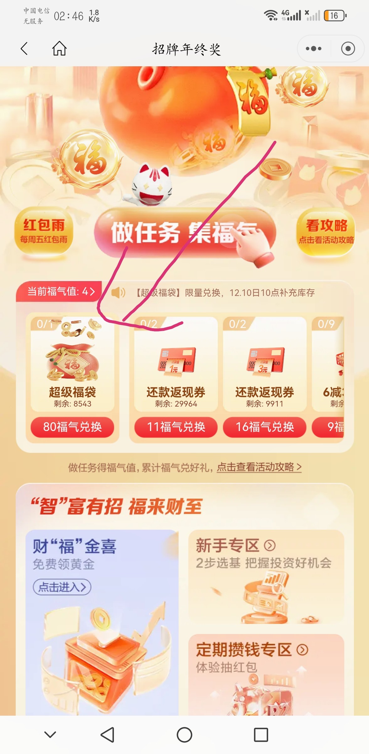 还有申请的那些水电费的这些可以直接交一分,还有体验的也是直接交一分。最低也有10块人人!!! 记得兑换那个超级福袋,其他的先别兑换,超级福袋里面有38毫克黄金红包,可以兑换30多块。有剩余的分可以兑换其他的黄金红包。二类卡可以兑换。