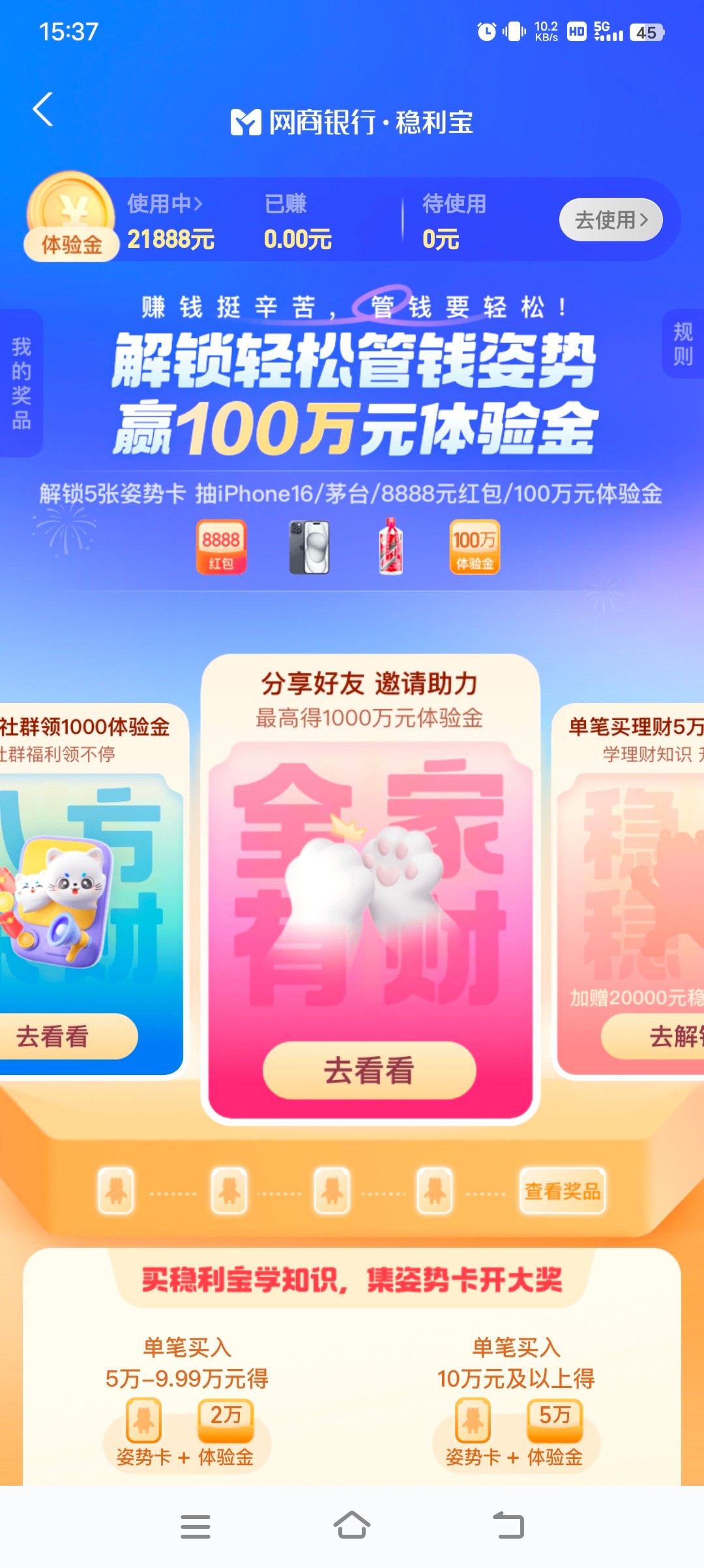 还有一个活动送66600的,需要邀请3个人,在首页点集卡开百万稳利宝体验金那个活动进去,不是人人都可以参加,我的不符合,你们可以去试试