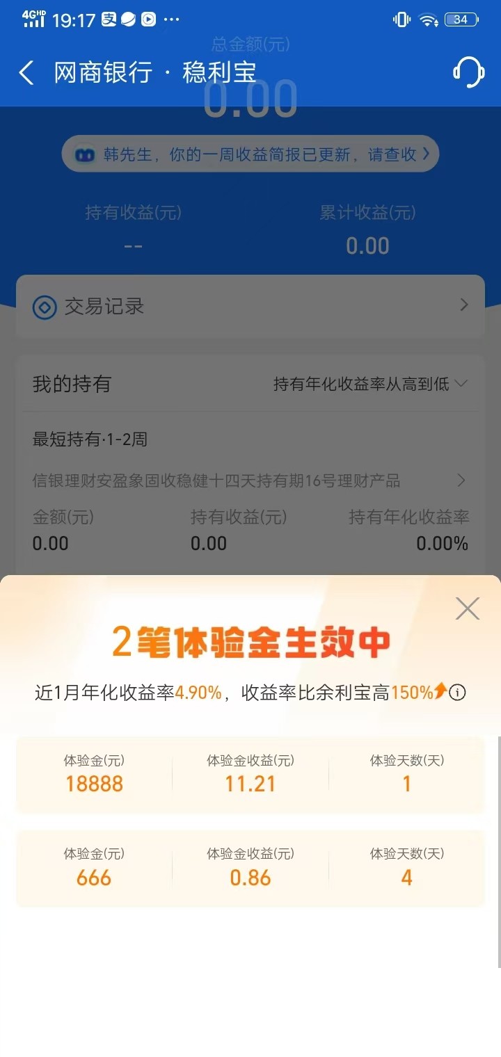 自己去应用商店下载网商银行,登录进去首页找到18888体验金 不知道新用户有没有,我是老用户,进去给了3天18888体验金,一天大概有10块