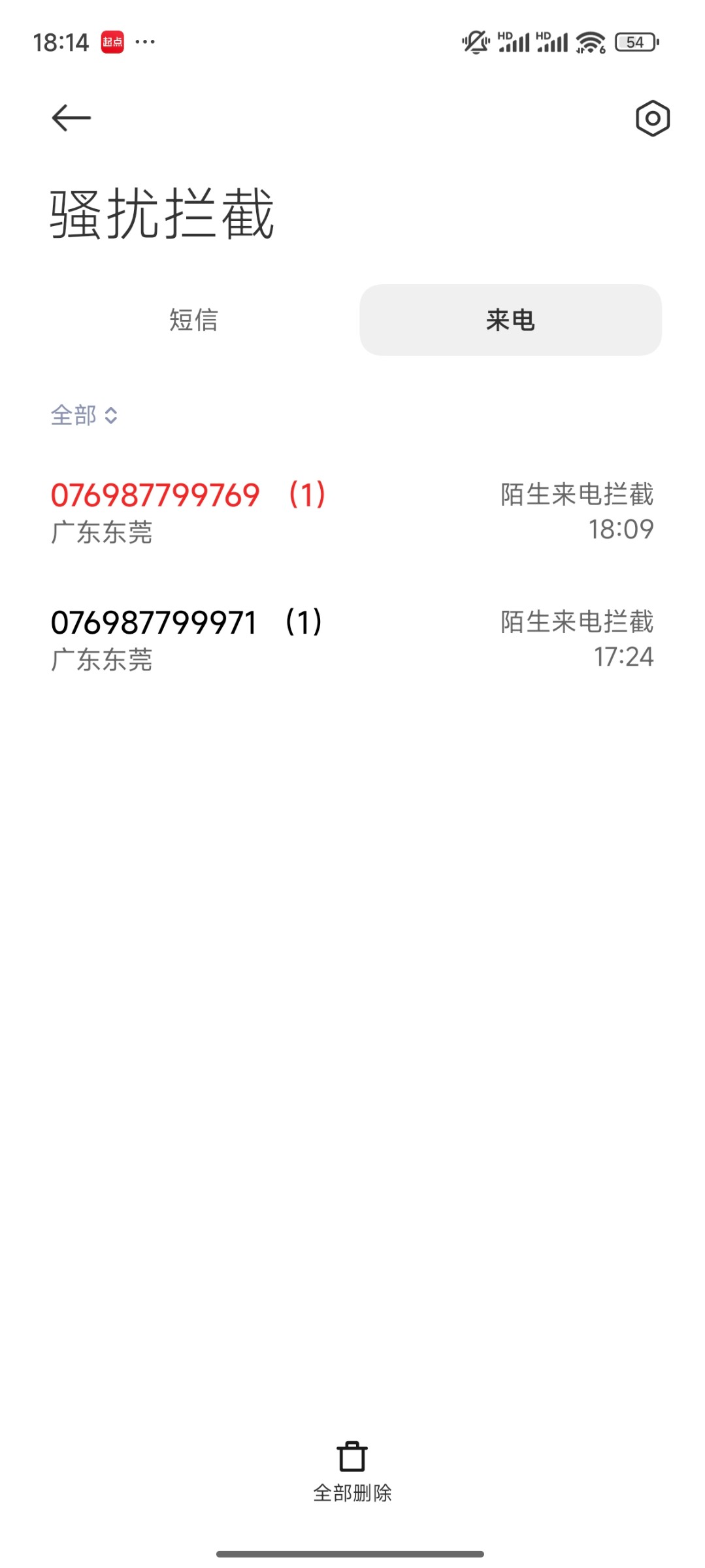 打了6/7个电话来了。我刚才删除记录了,然后直接设置所有来电拒接。草草草
