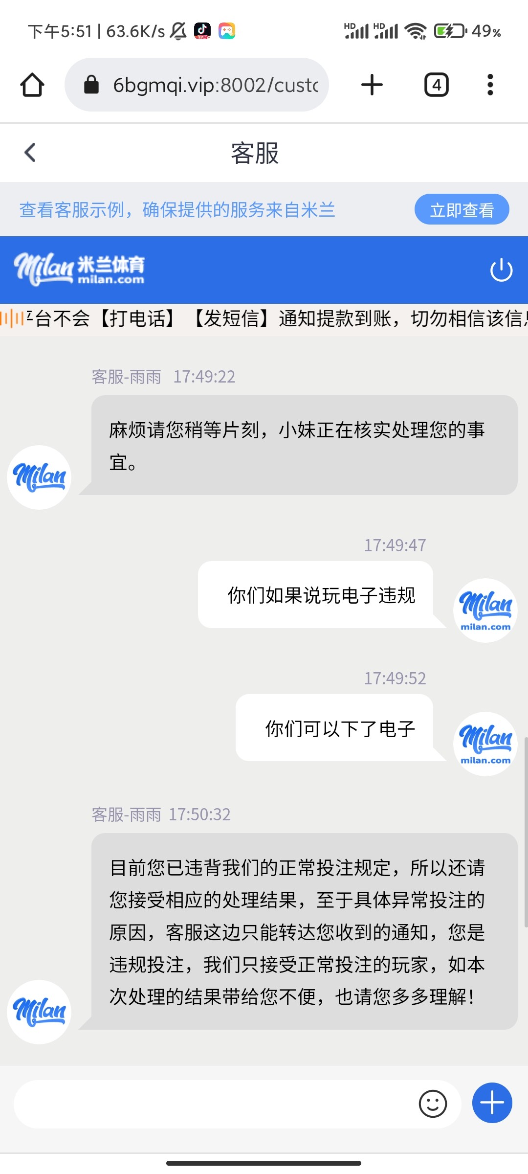 米兰封号
