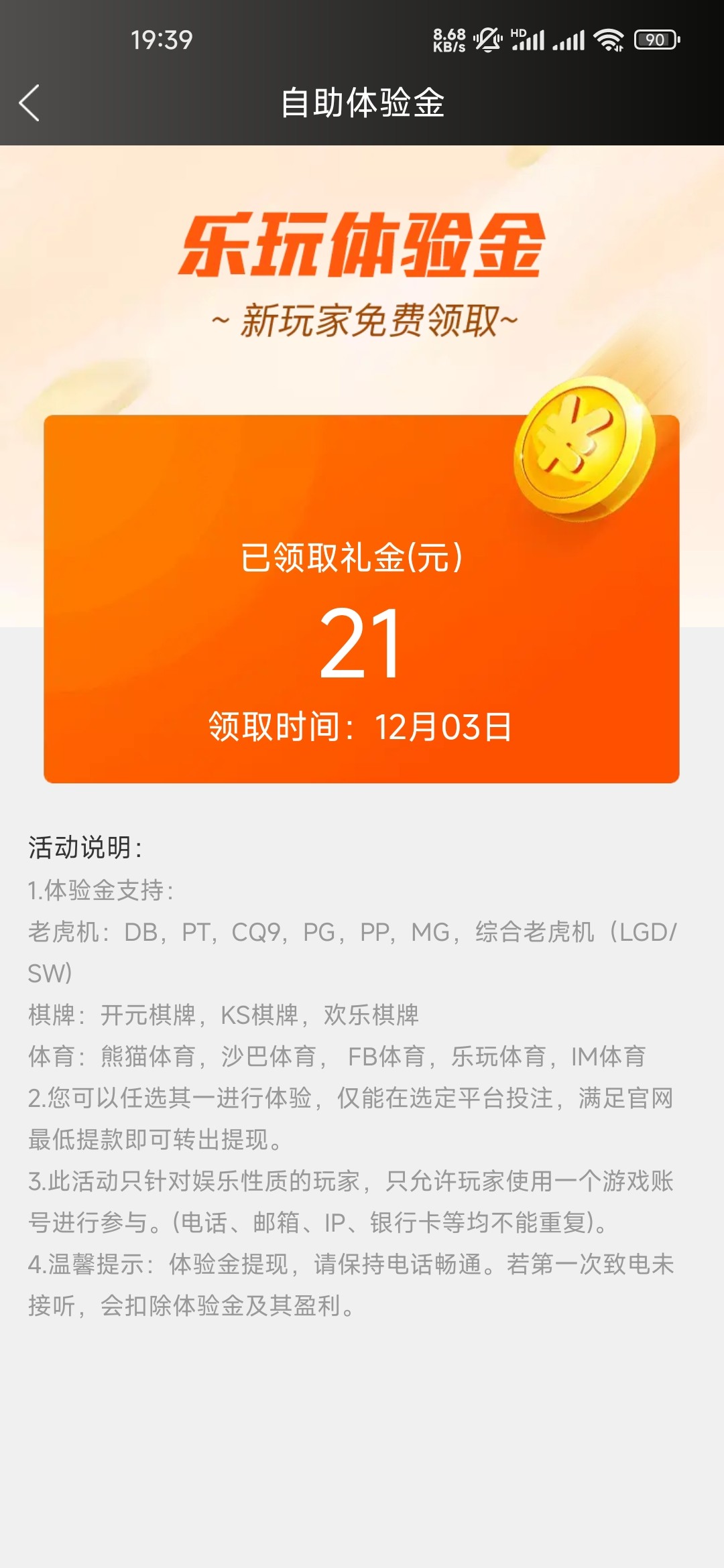 他妈的 领了25体验金打了29流水