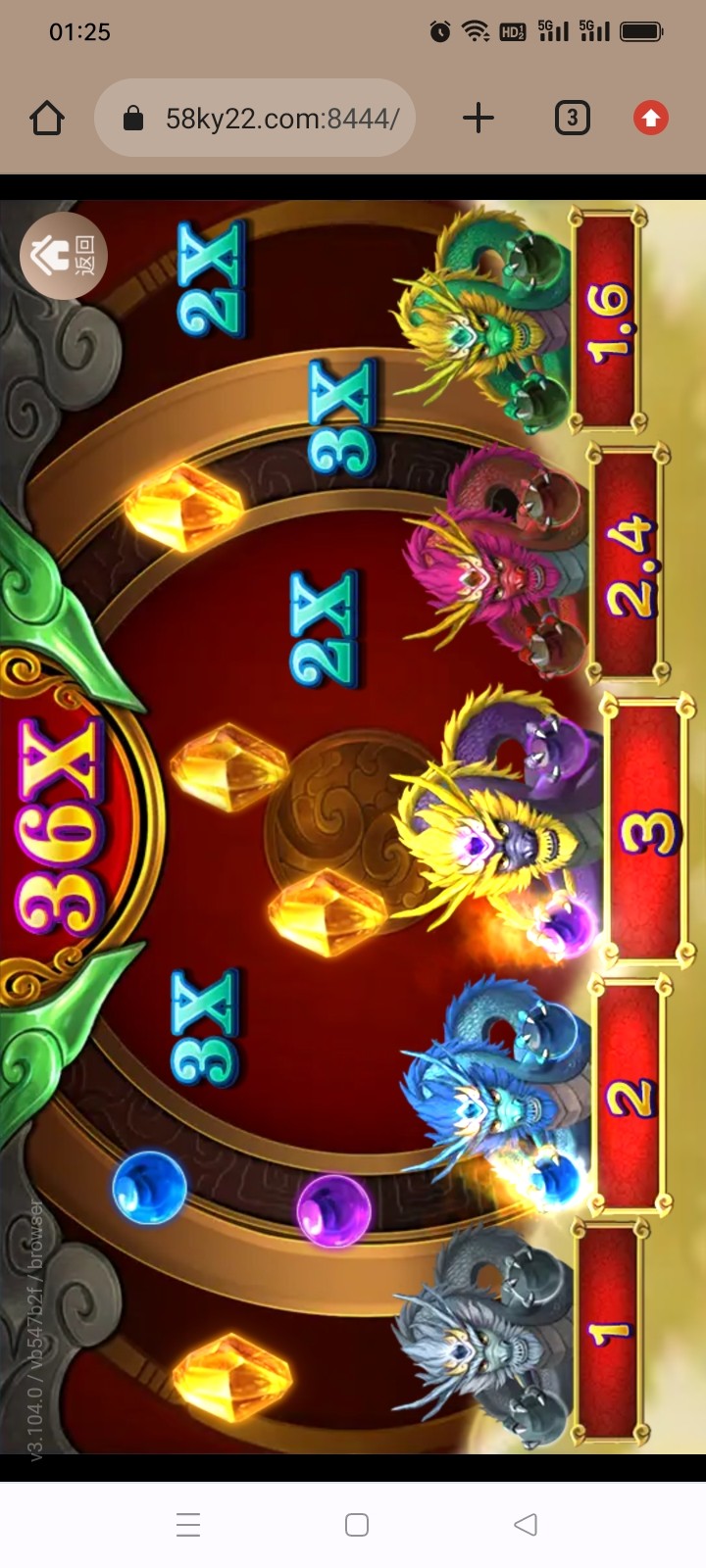 图上这个,最后还得再点一次才开奖,最后掉到2上面,给了2*36=72。。。。。妈的