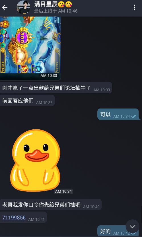 满日星辰老哥,打鱼小赢了一下