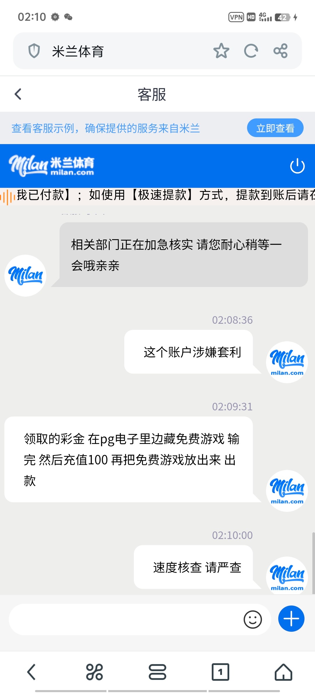 米兰给我整不会了,158打出来了,第一笔提100然后10分钟到账了,第二笔提120审核了半个小时然后直接封号了,我都无语了