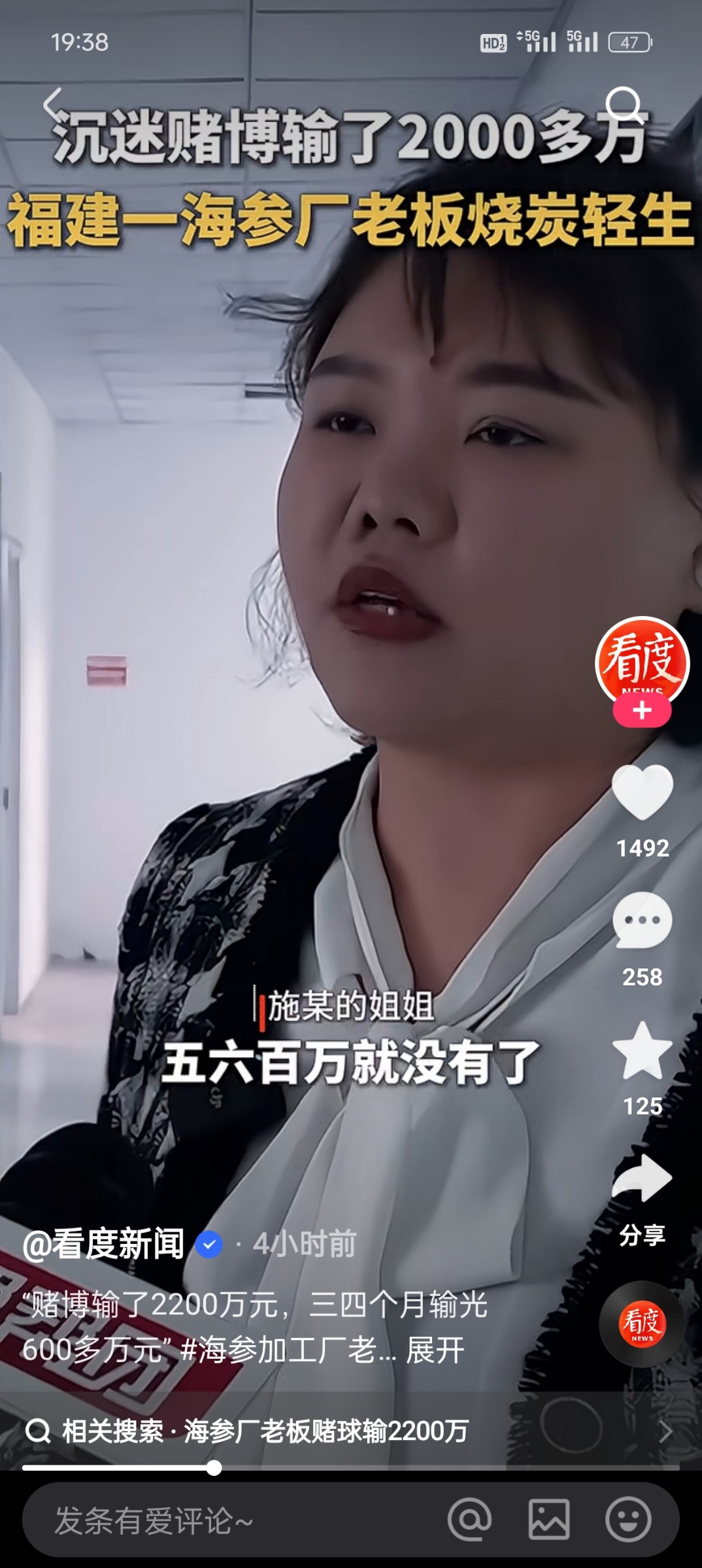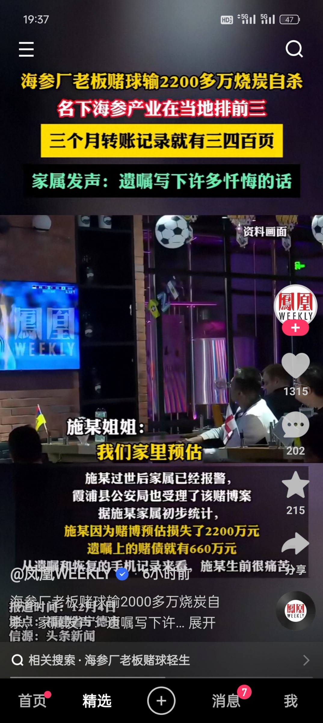 赌了7年 年年没钱 今天在快手上看见个赌球的 想必有两千两百万的都输了 更何况我们的结局不知道是哪一天