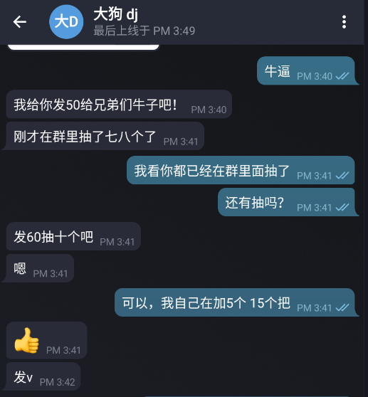 赢钱的老哥基本上高兴都会在群里面直接发的