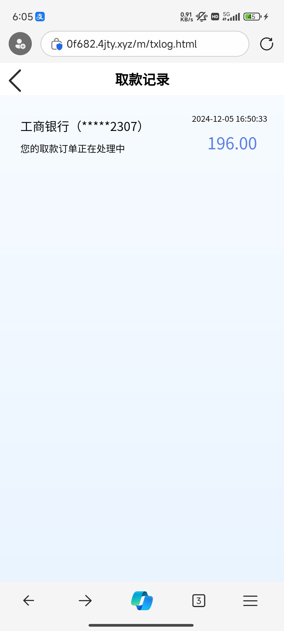 模仿的鸭脖四季体育,签到活动领了10.22,需要任意存款才能转入游戏,最低充10,搞了10块打到196提现,被冻结
