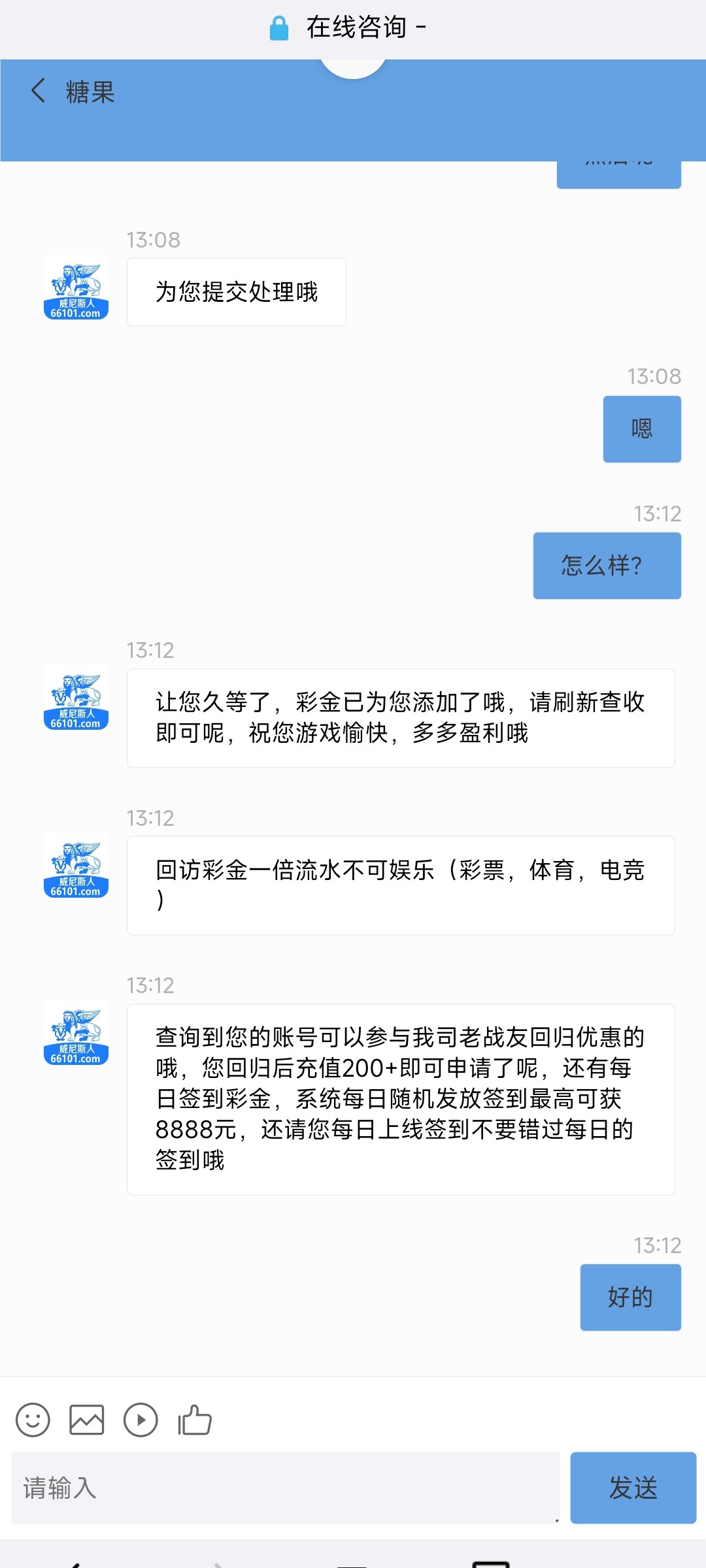 蓝版,登录账号找客服碰瓷回访彩金,66101.com