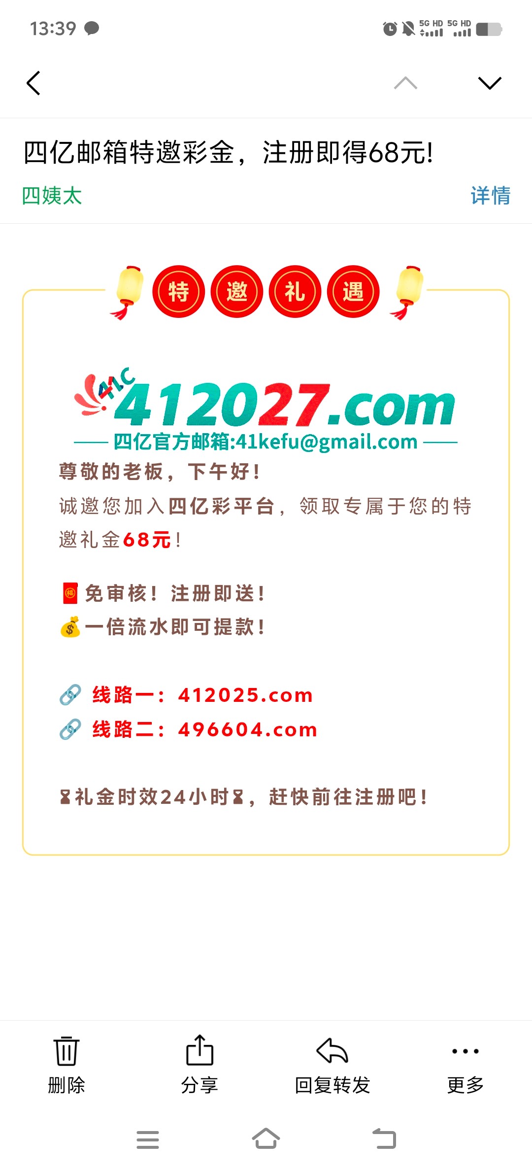 四亿彩平台邮箱彩金68元,我已出款 网址 412025.com 496604.com