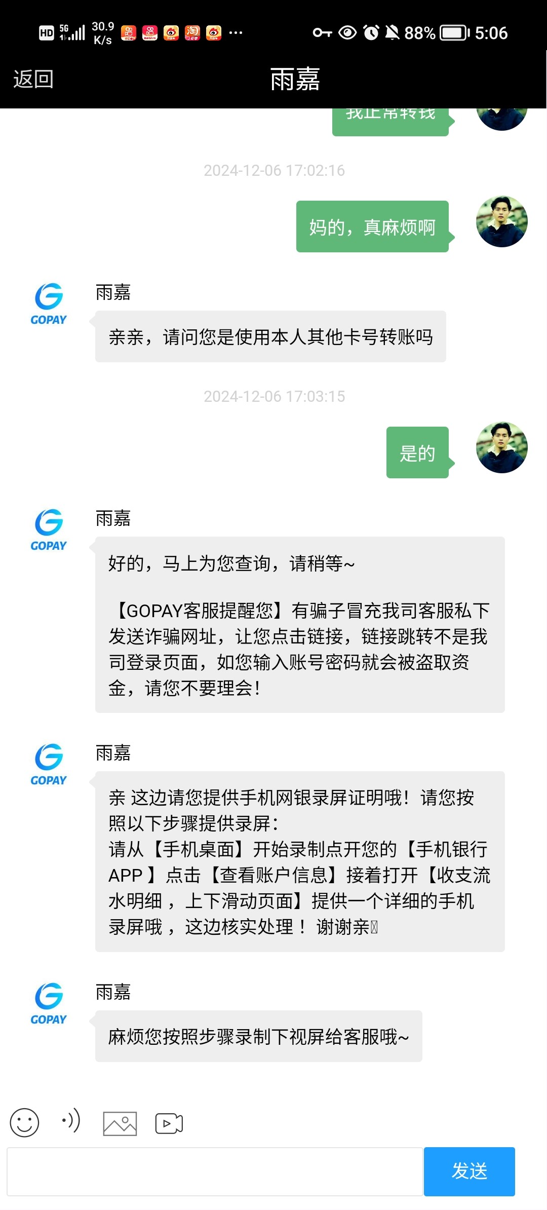 老哥们P图一定要有老哥上面的一体化在P,我手机下载不了一体化,交流群有个老哥说P图很专业(不是群管理星辰,星辰不可能一个视频还搞不出来啊)名字忘记了,今天他叫人帮忙P,go钱包,5000第一笔就出了,卖家那边2分钟放币的,准备去充值,客服说图片不清晰,卖家那边一直没发现,客服要发一下视频,结果那个帮忙P图的老哥七分钟给我做一个一秒视频,还说视频很难做,不要催,直接骂我,我搞不懂,你啥也不懂为什么要装逼带老哥P图啊,一个一秒视频7—8分钟做出来,P图的也不清晰,名字还错了,对了,他唯一可以的,就是可以查银行卡手机号发短信,打电话,这笔5000他电话也没打就放币了