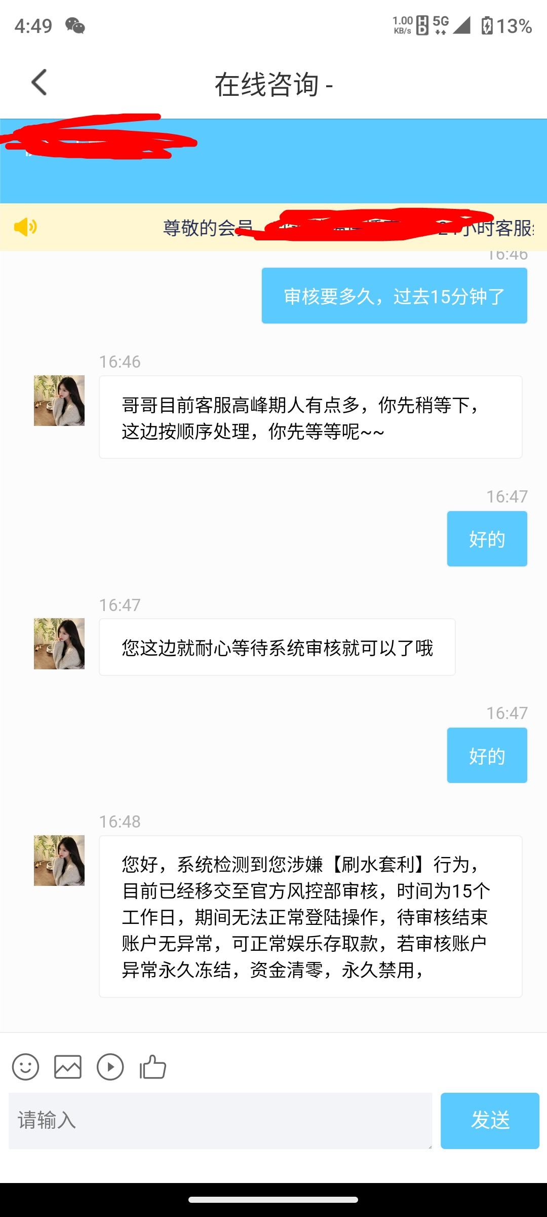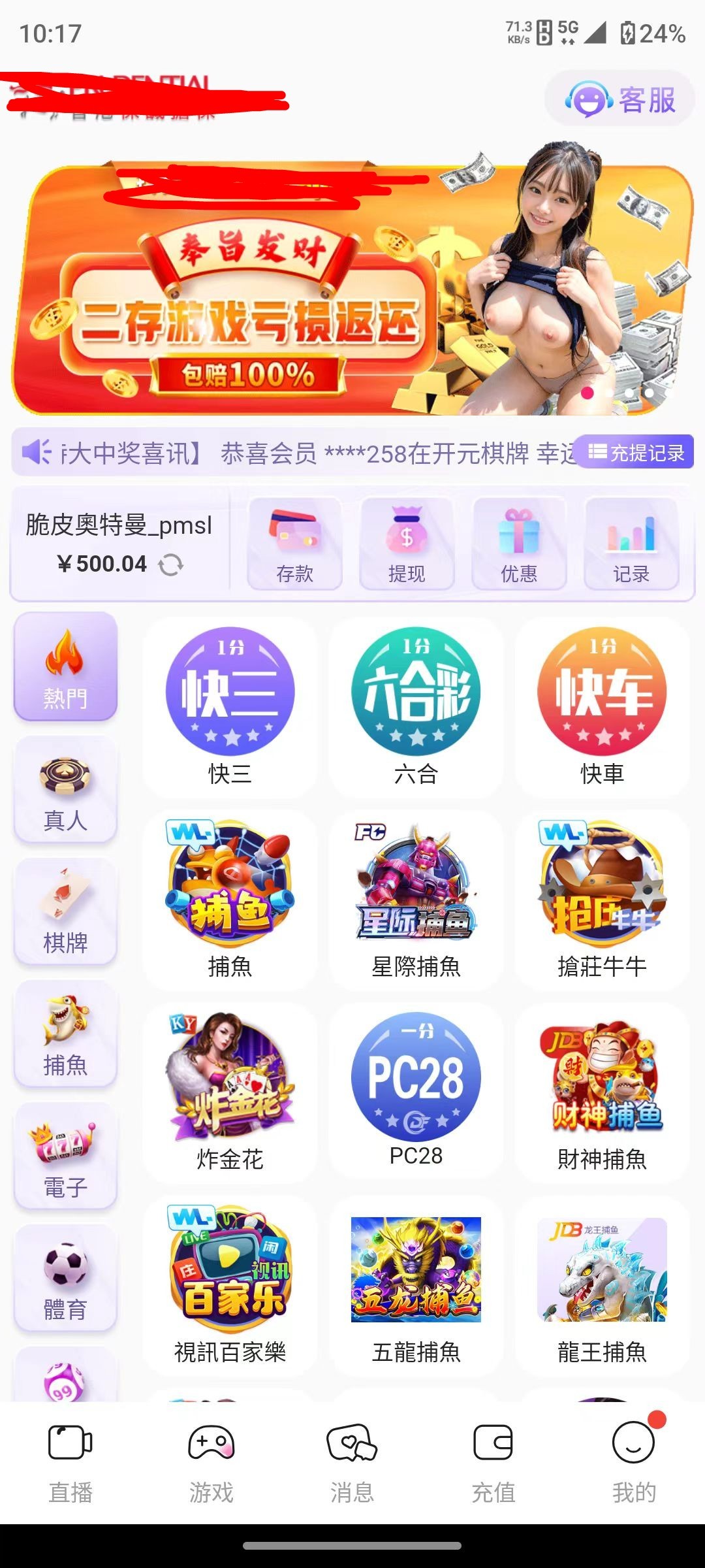 抖音直播一个逼样 昨晚6块打到2000 输到300去提 也是拉黑 审核15天