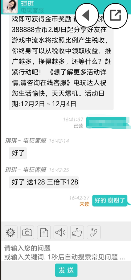 特么我一年前注册的。让游戏大厅找客服,客服在哪?去年领过一次打出来给了128