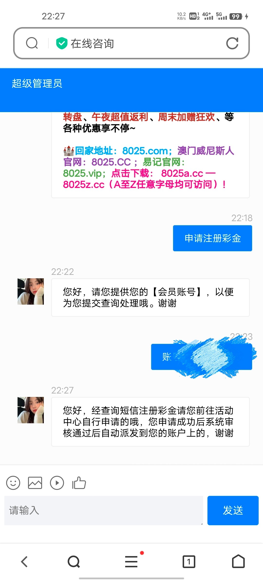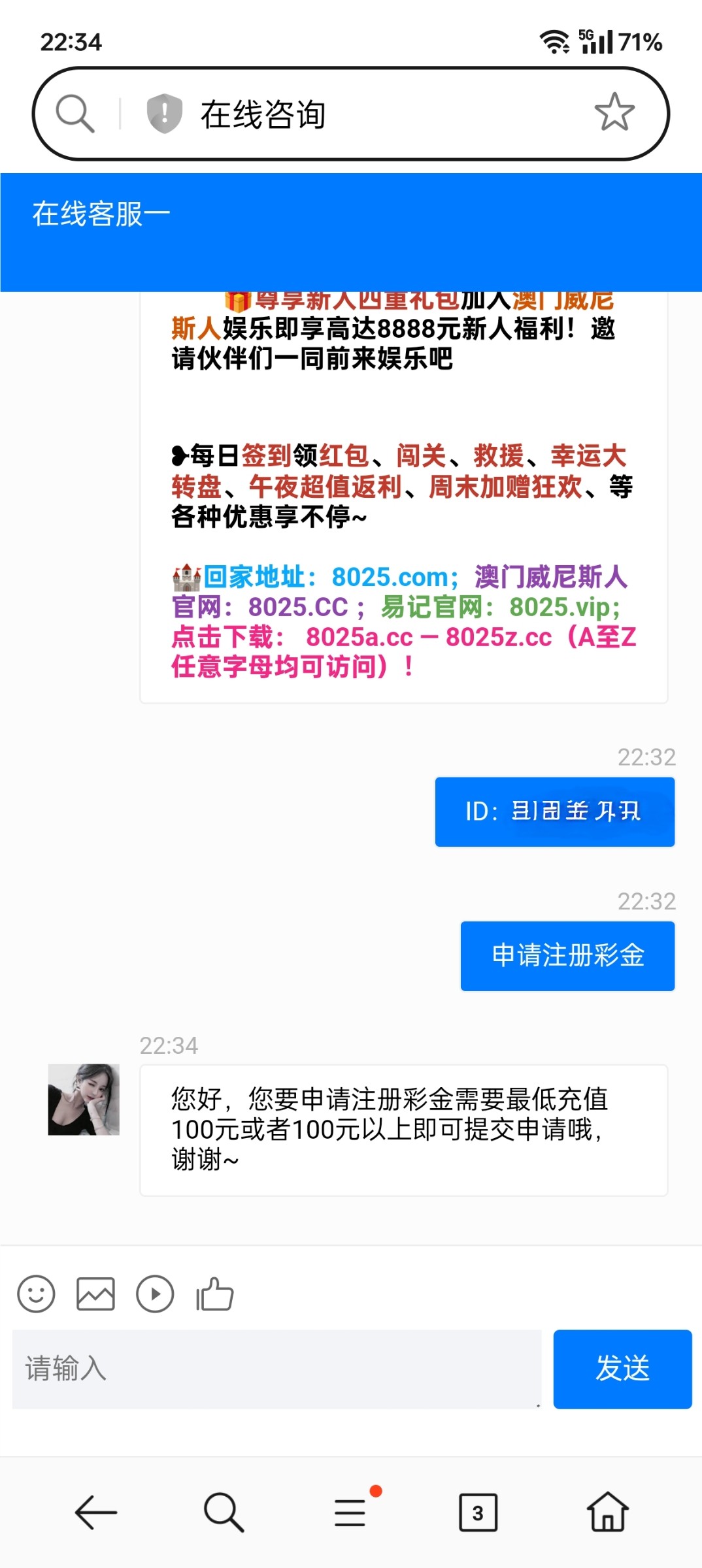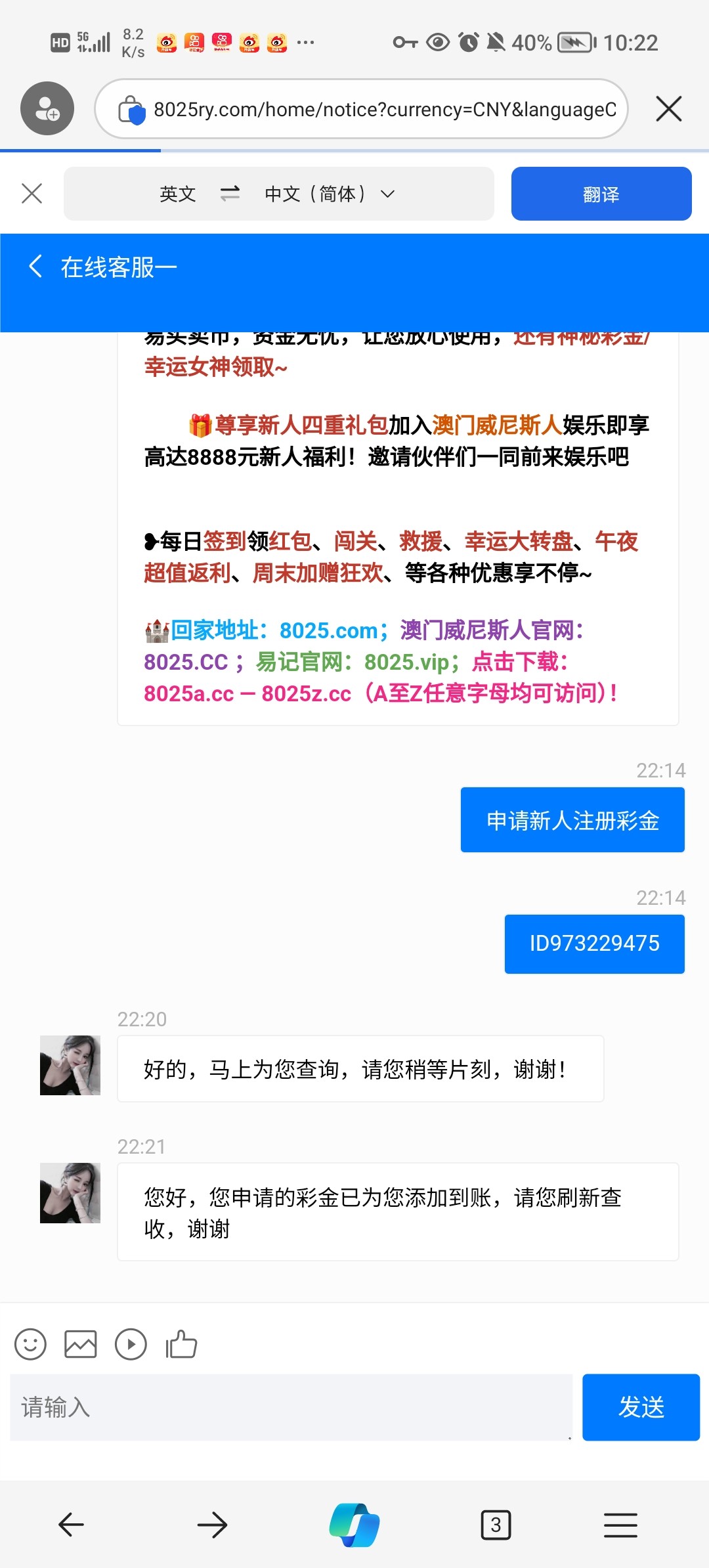 找在线客服领了9块
