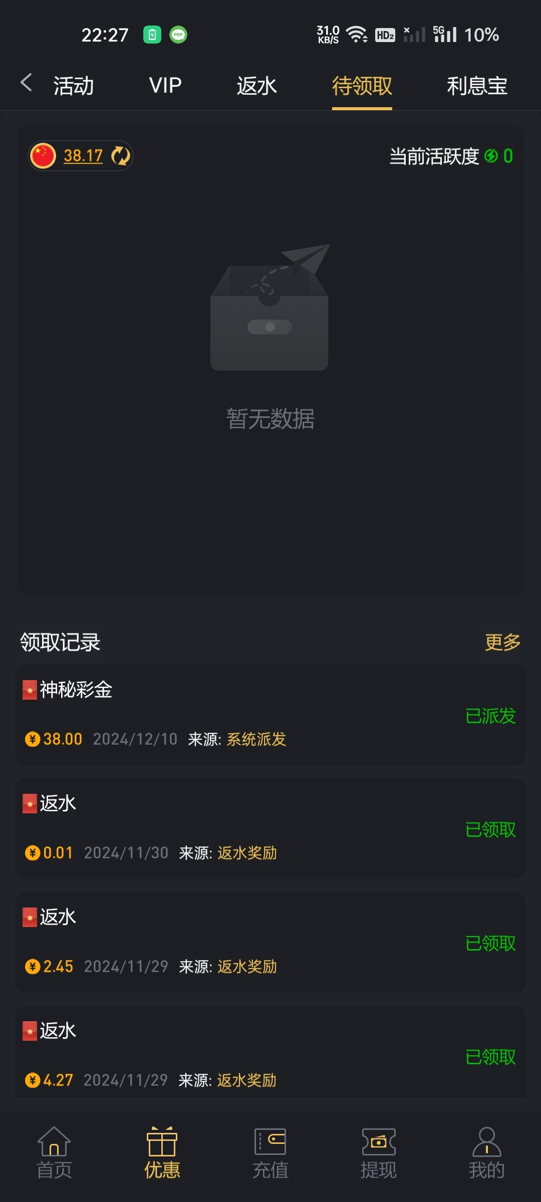 今天一口气送我两个38没搞不懂 分逼没充送了快150的彩