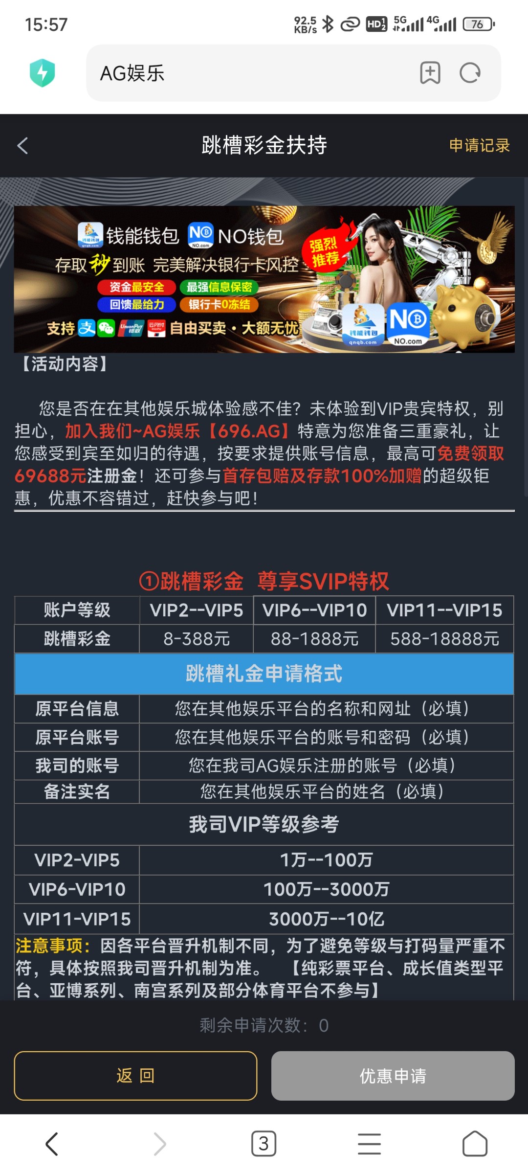 跳槽金我领取到5,你们可以去试一 地址 696.AG