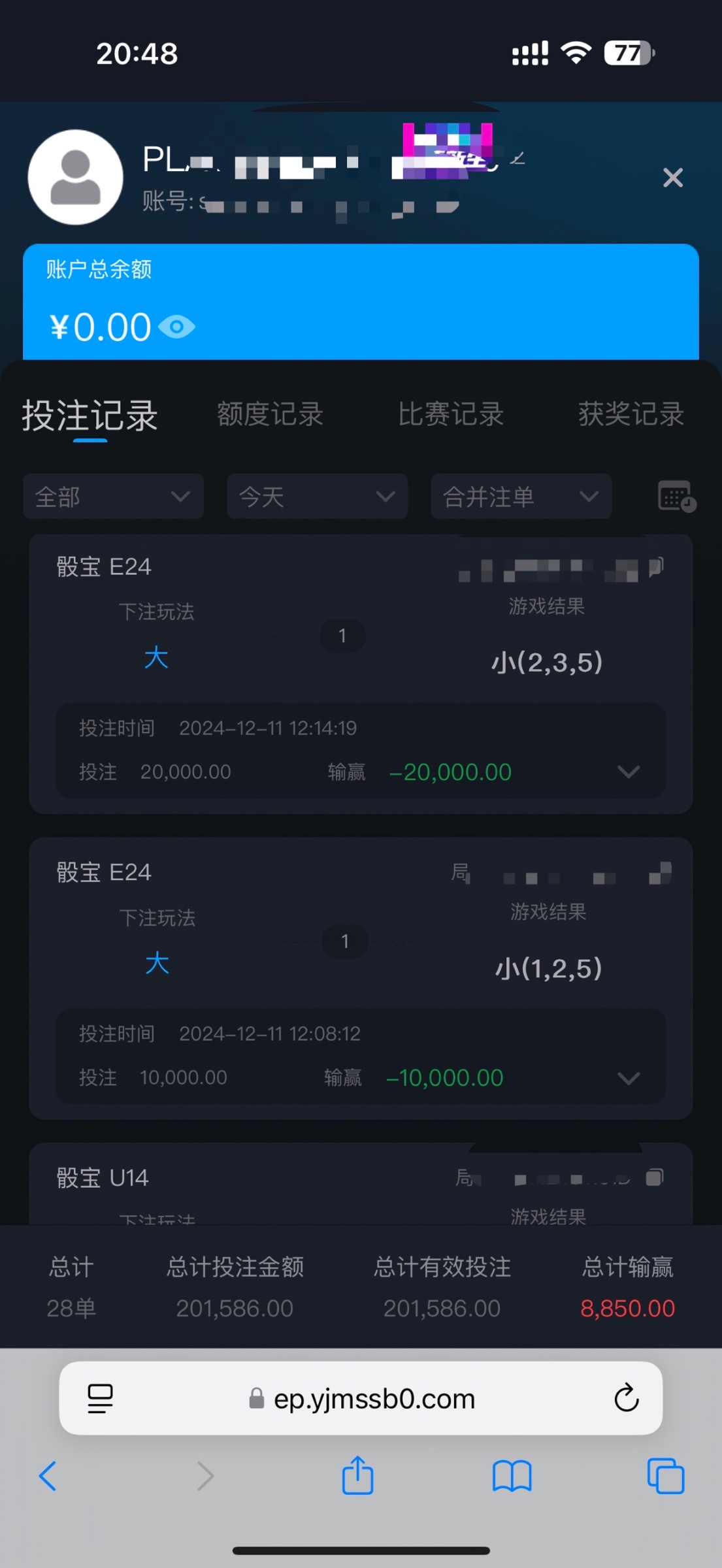 今天上头了,1000不中,5000不中,10000不中,20000不中,最后2万中了,然后2万又输,一直循环,最后连续两把2万中了,一小时打了20万流水,心累,控制不住自己,提完6万,等隔天1000多反水弄出来,然后去营业厅准备把手机号注销了,这个平台不能换绑手机号,哎,希望过年前可以戒掉,加油