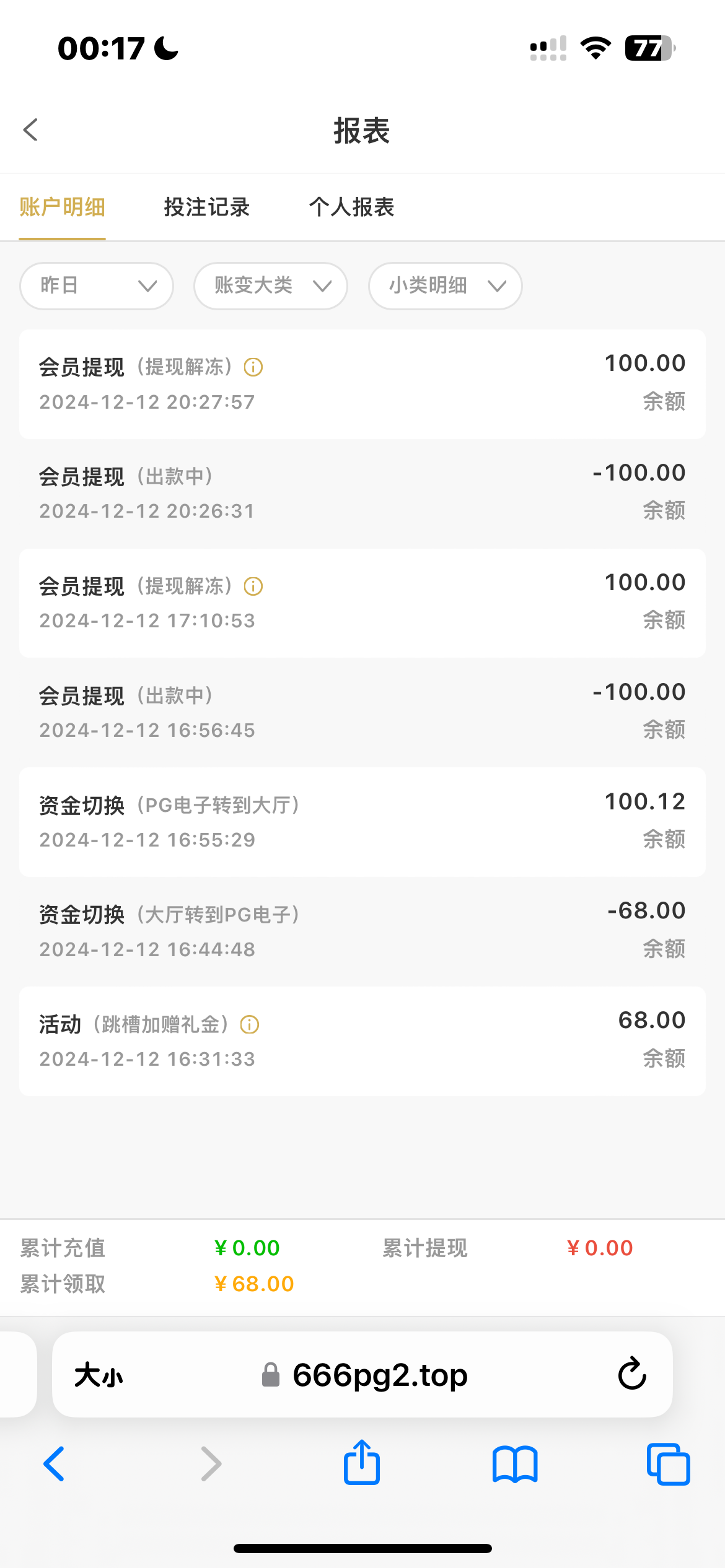 十六 ▶ 狗庄必须给 特邀8块上200都黑 2024-12-14
