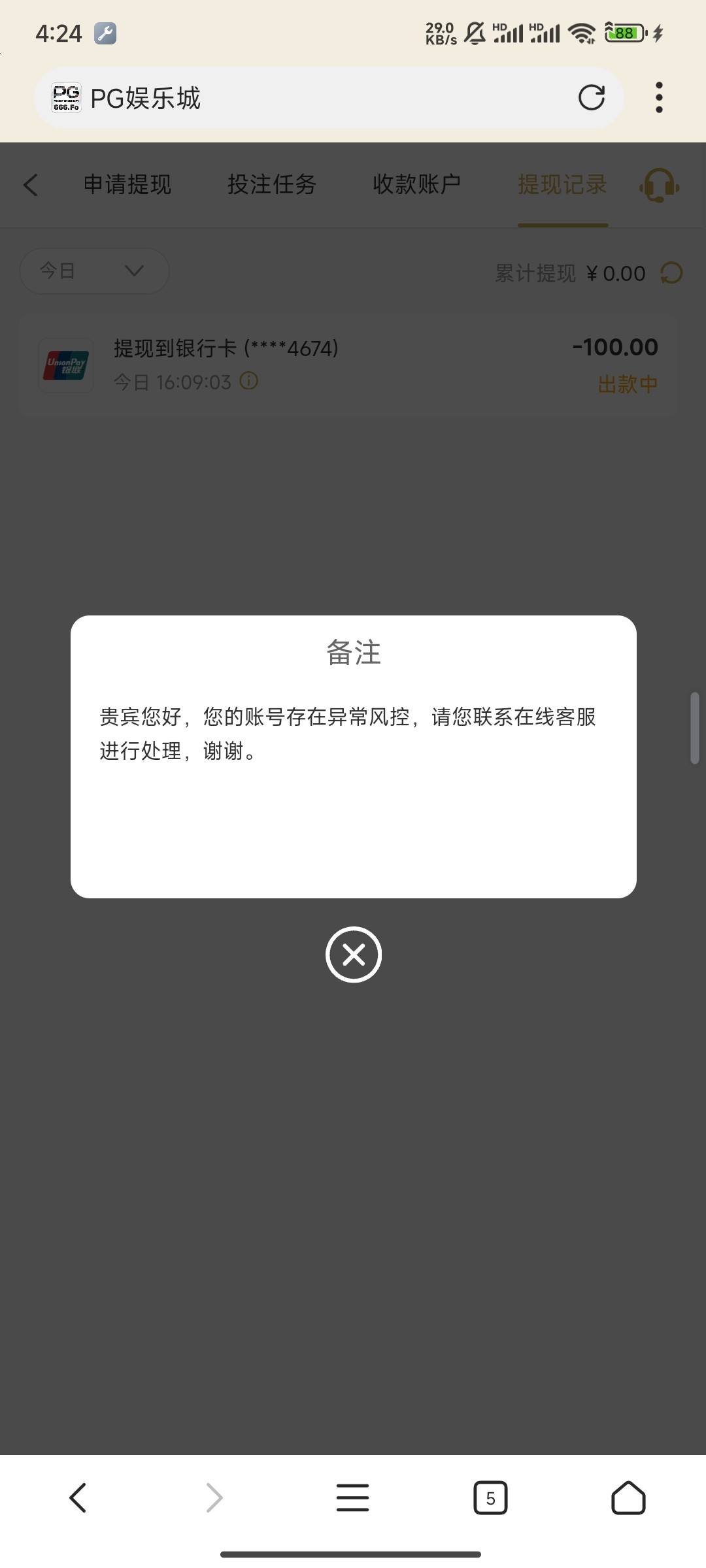 给了288打够流水提现五个小时了 优惠都没了说是触发风控 客服都懒得问