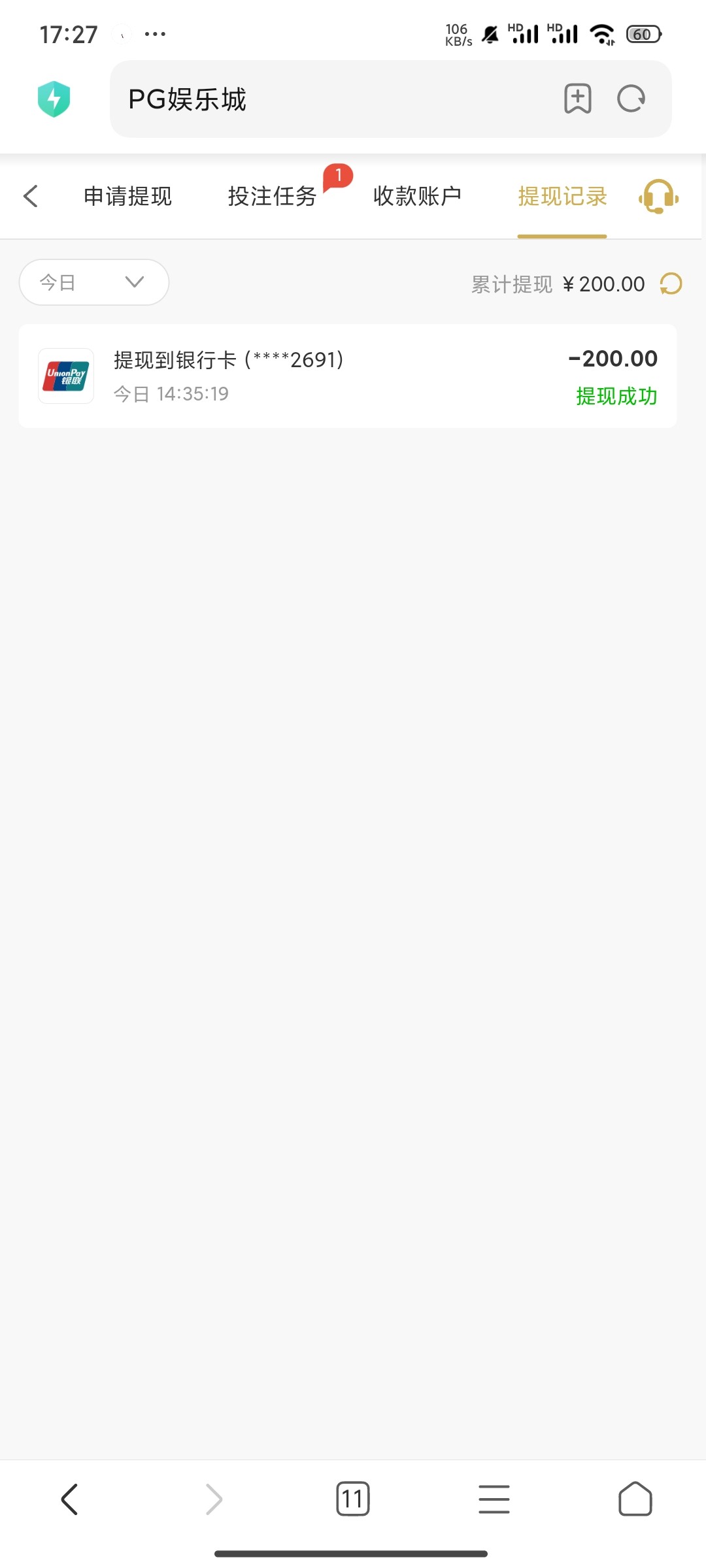 给了88 看这么多黑的 就当欢乐豆玩了 麻将2四块钱爆了1200 提了500几分钟到了 又打了会提了个1000