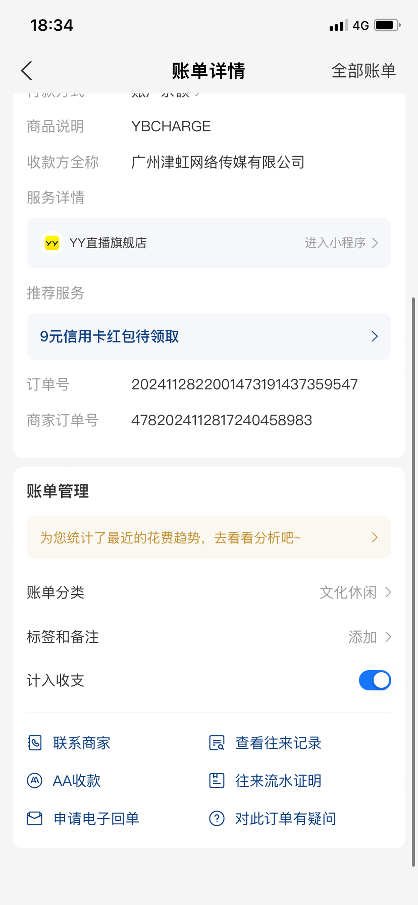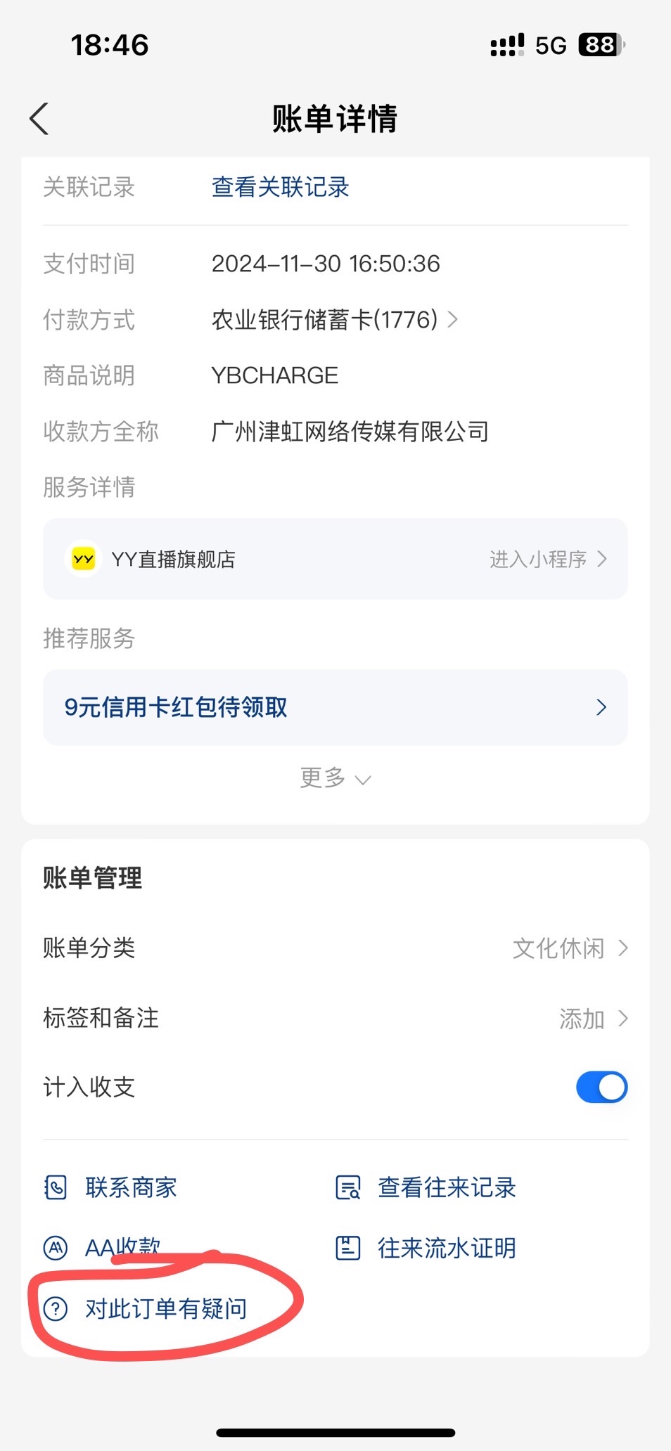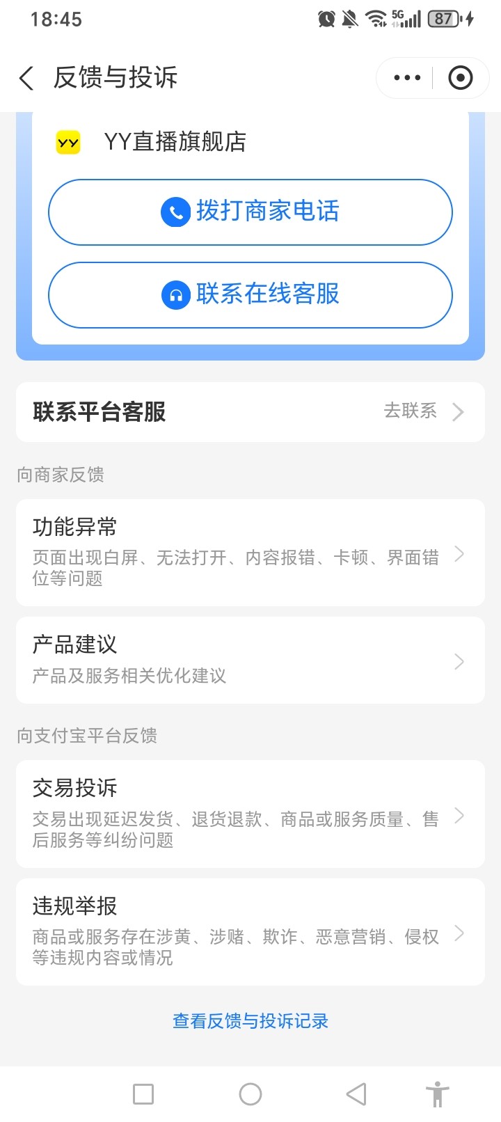 具体点 找不到投诉入口 是从支付宝账单进入还是yy直播进入