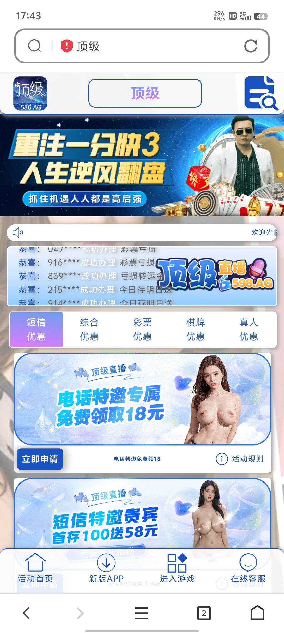 这个我领过两个电话彩金还有一个回馈58