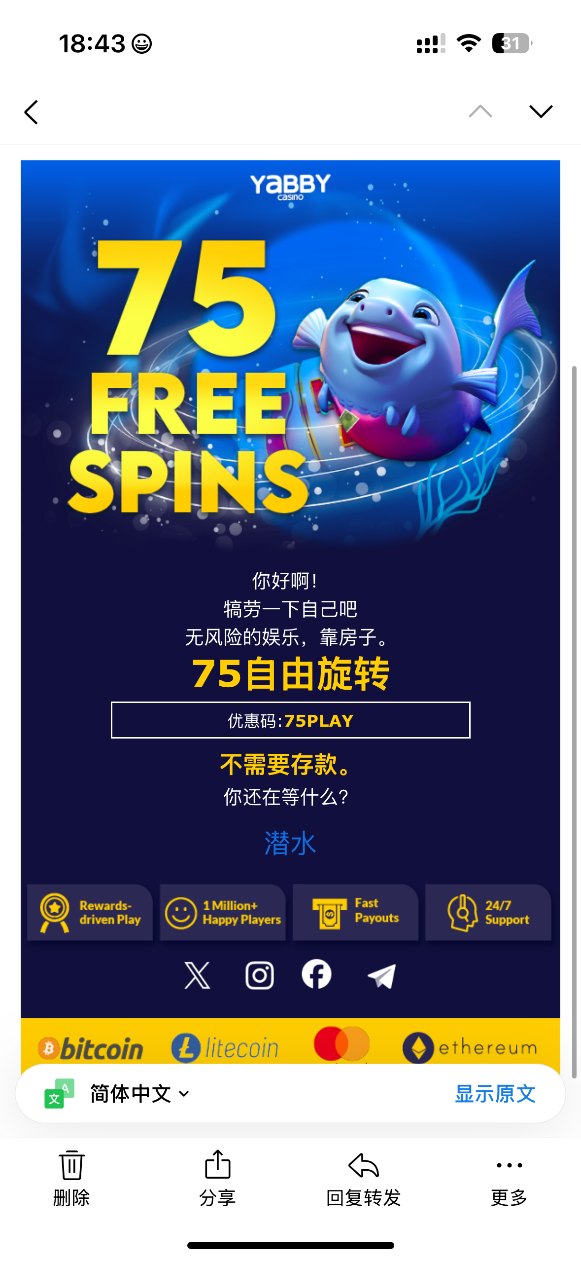 国外台以前论坛发过,以前邮箱注册过的会收到邮件才能领要欧美IP 开加速器换个美国这些国家的打20倍流水自动换30美元 最低50美元提现