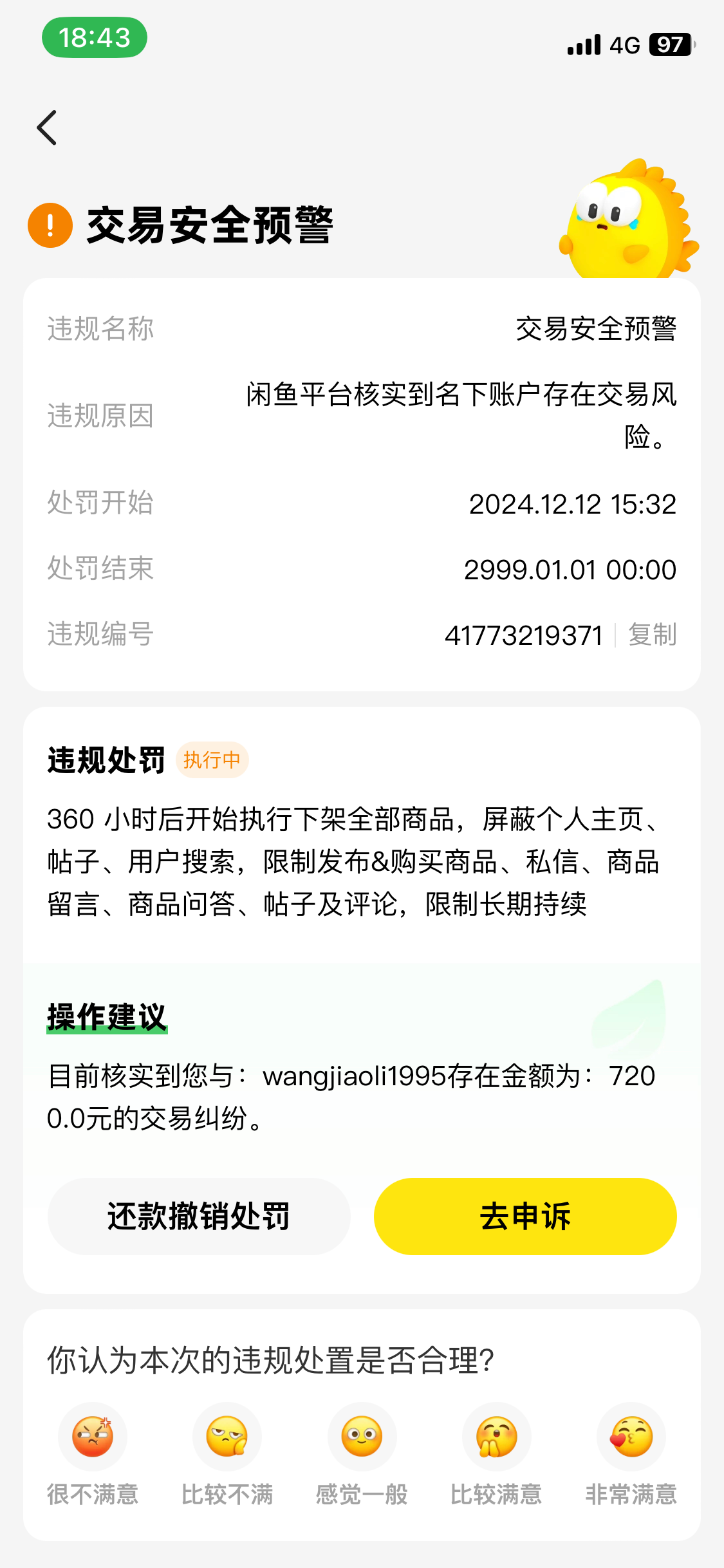 没事的 好兄弟 19年出租闲鱼号和你一样的情况 别管就好了 就是闲鱼不能用了