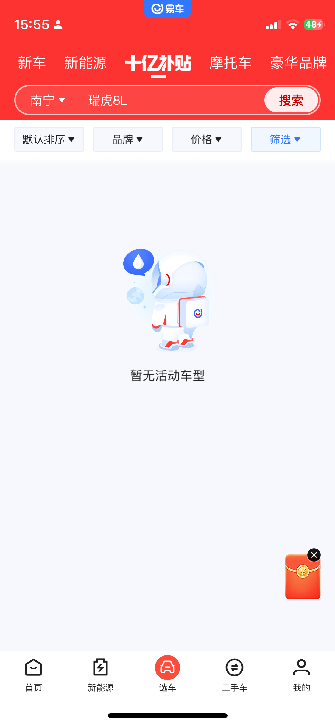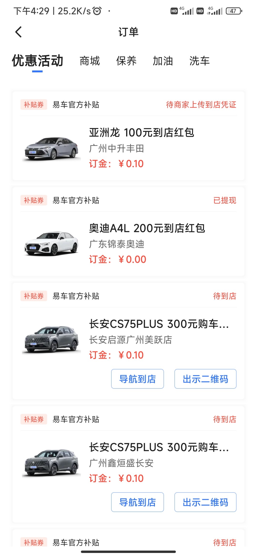 应用商店下载易车app,上限好像是7次,一次200,主业十亿补贴-下滑然后有那个筛选-然后到店反现