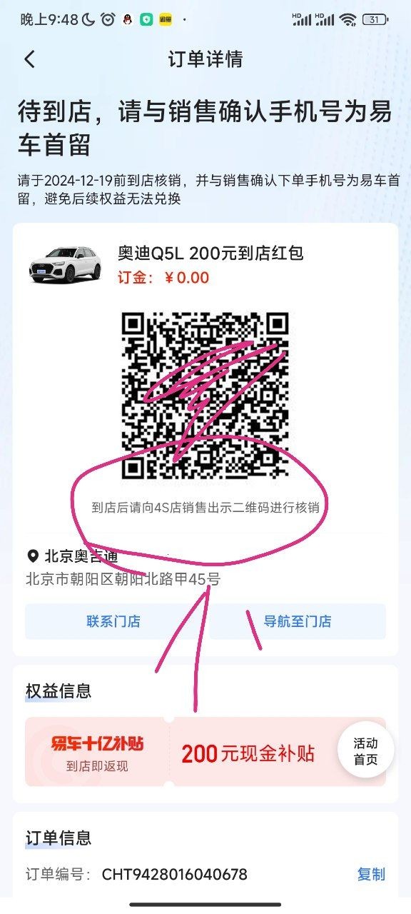 第2种方法,你加你打电话给门店,然后加那个门店的销售,跟他微信聊一下呢,看自己操作吧,聊着聊着就说易车那里有个活动,我到时候去门店你能不能跟你一人100块,然后你帮我弄一下帮我扫个码证明我到店里面看了