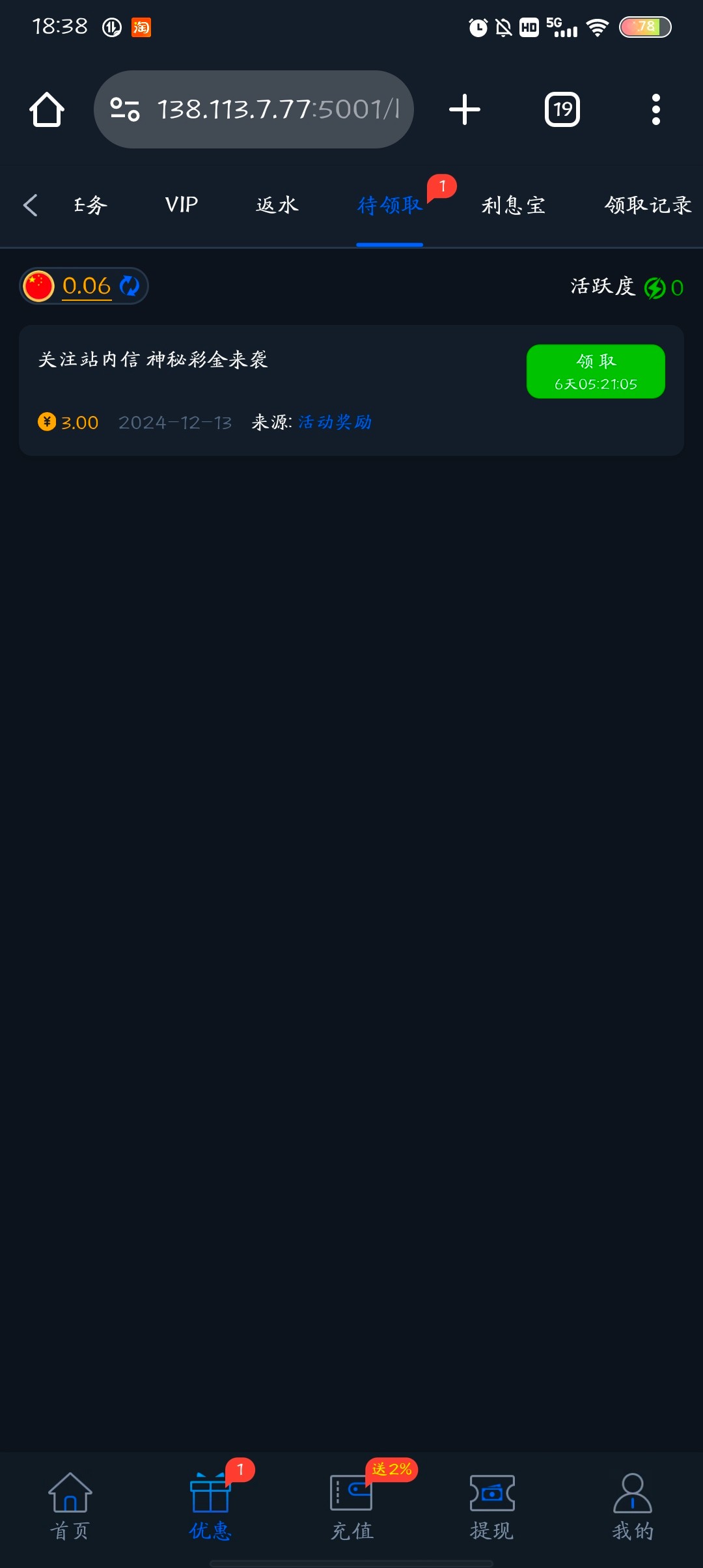 之前有个老哥发的lg娱乐,刚才上号看了一下有3块钱,这个平台好像改名字了,这个之前也白嫖了280应该不黑 790.com